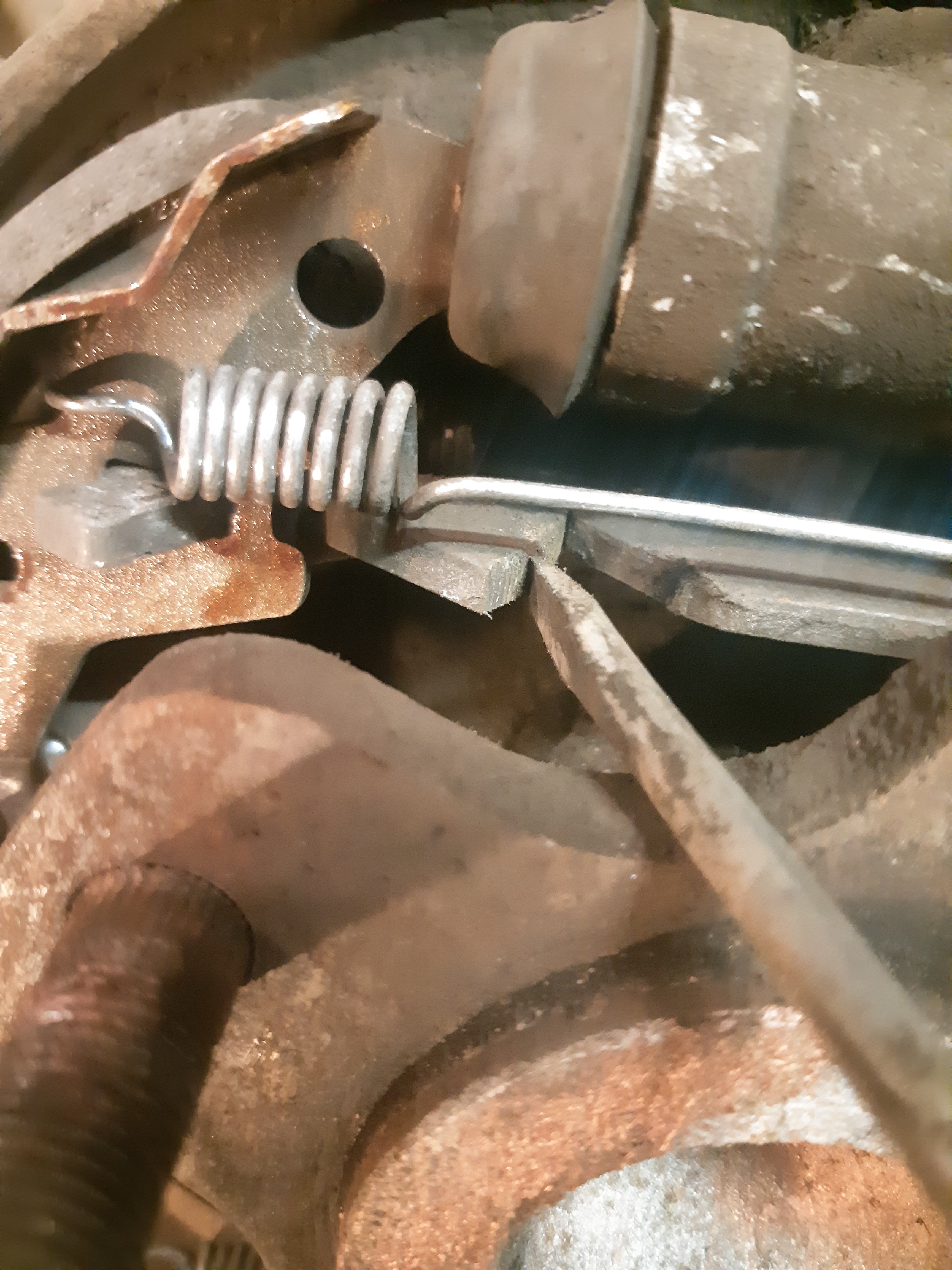Опять пришлось снимать барабан на дорестайле. Не, ну я конечно рад что колодки сами подводятся по мере износа, но малейший буртик на барабане (а он неизбежен) приводит к мучениям. Сняв барабан я решил первым делом найти способ разблокировки храповика извне для освобождения колодок.