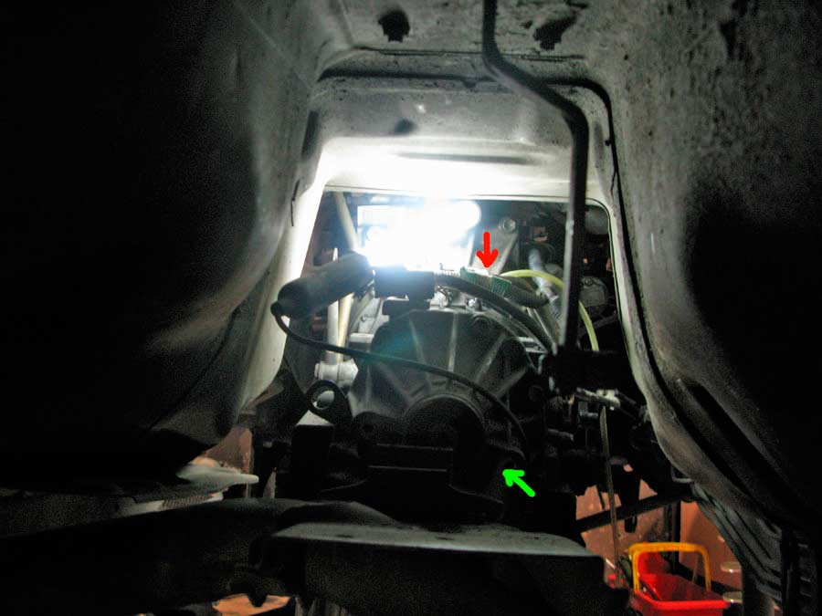 Собственно двиг и автомат снимать не обязательно - достаточно скинуть раздатку, слить масло с АКПП, вытащить кардан коробки на раздатку и подперев домкратом поддон коробки открутить 4 болта крепления к раме и аккуратно приопустить немного - потом все отлично делается. Диаметр соска на автомате 9-10мм.