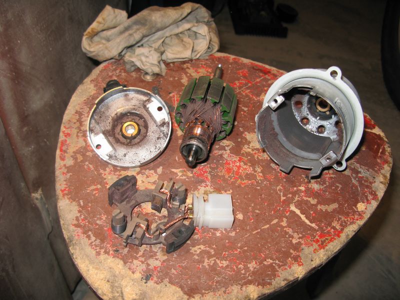 Откручиваем в торце двигателя 2 винта (не ошибетесь, там других и нет) и разбираем двигатель. Аккуратнее со щетками. При разборке этого двигателя ничего не разлетается и не выпрыгивает - огромный плюс.
