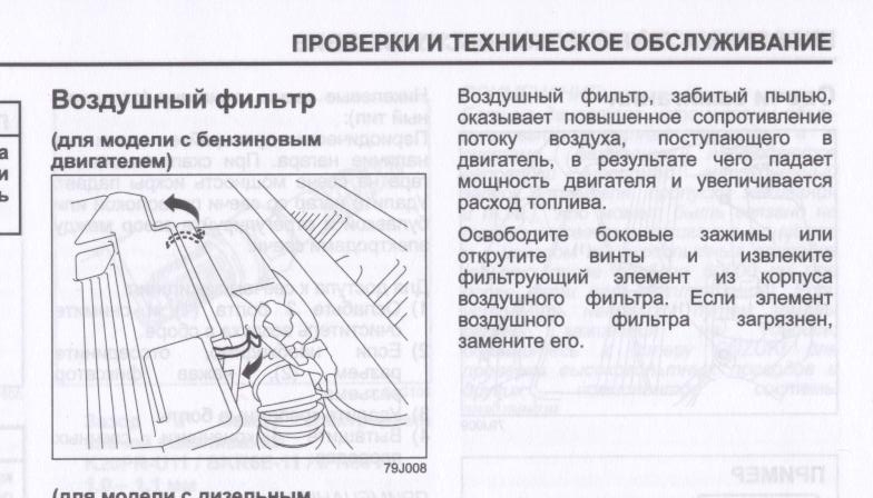 Если есть мануал ("инструкция владельцу"-должна была идти вместе с машинкой) открываем раздел 8-20 (8- "проверки и техническое обслуживание", 20 - "воздушный фильтр": верхняя (из двух) картинка наша - про замену возд. фильтра, читаем второй абзац (фразу про "открутите винты " пропускаем - она для дизеля, у нас про "боковые зажимы").Dzinters написал(а):как выглядит корпус где находиться воздушный фильтр, т.к. не знаю даже где его искать, ну или карту как до него добраться после открывания капота, ПЛИЗ!