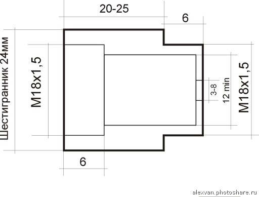 я тоже вот штангелем обмерил Денсо ( верхний,год назад поменял) чертёж нужно корректировать.Диаметр защитной сетки 12мм,плюс по 1мм на сторону,это уже "дырка" под датчик 14мм,а резьба наружняя 18мм,на стенку остаётся по 2мм на сторону,как бы не оборвать при закручивании-откручивании.Если сделать дырку на 12мм,то датчик не сможет "нюхать".Диаметр "входного" отверстия от3до 8мм тоже,я так думаю,имеет большое значение какое оно.Вот я и ищу "рабочий" образец и его размеры,что-бы не экспериментировать.