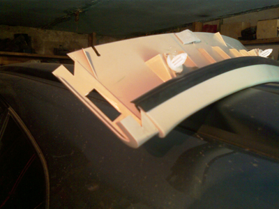 Сверху по краям обшивки есть две пластинки, которые должны вставлятся в пластмассовые пистоны при сборке двери, но у меня пистонов не было (видимо корявая европейская сборка), найти в магазинах не смог и поэтому перед сборкой налепил на пластинки расплавленый полиэтилен и установил обшивку пока он не застыл.