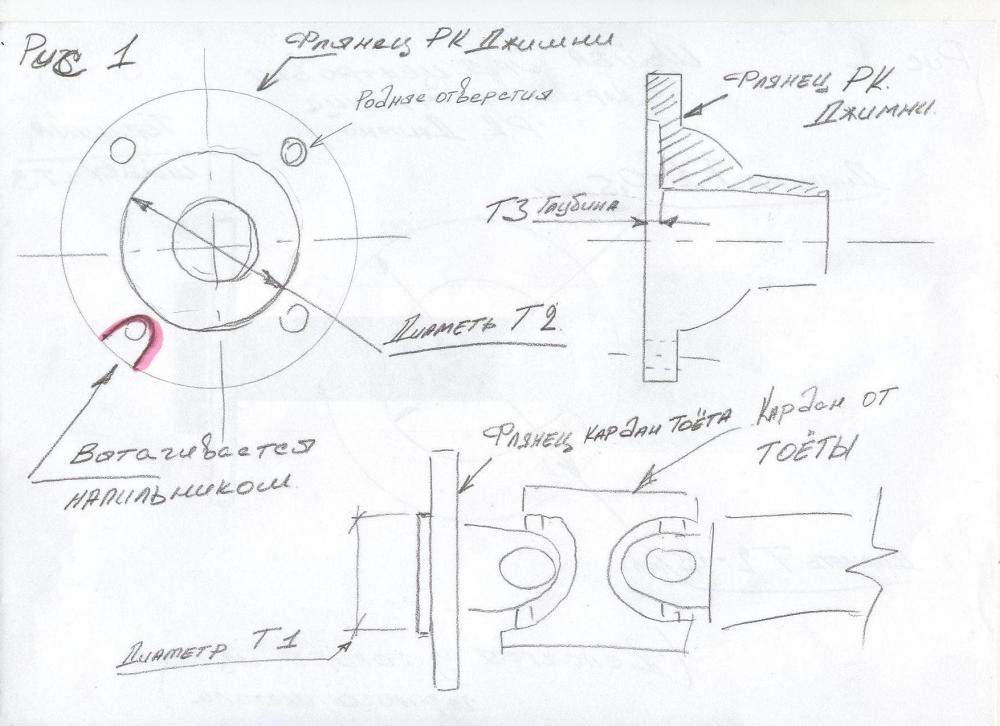 надо отцентровать флянец "РК" и флянец карданного вала для этого нада выточить шайбу у токоря из стали на рисунках как мог нарисовал всё это отруки