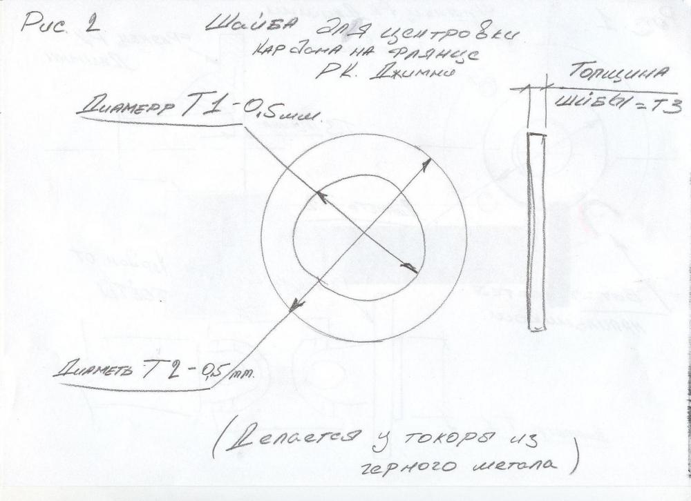 внутренний диаметр шайбы должен быть на 0.5 мм болше диаметра на кардане читать как (Т1 плюс 0.5мм)(Шайба должна одиваться на высуп на кардане но также недопустимо болтание)