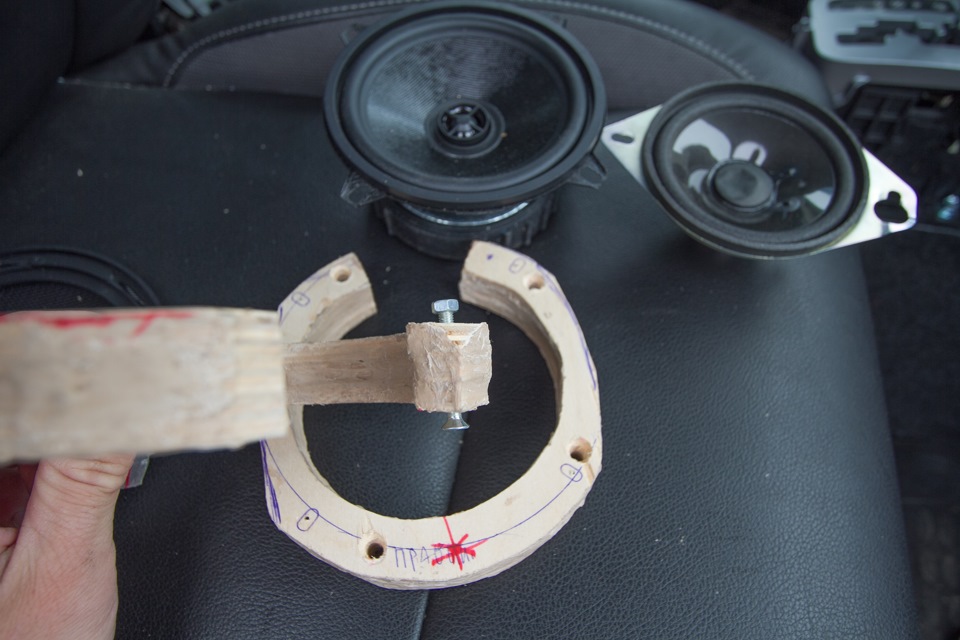 И на двух саморезах держится родной динамик. Открутите его и посмотрите место, можете замерить! И всё поймёте!