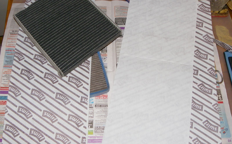 Воздух в салоне значительно приятней, чем с обычным фильтром. Да, ещё можно противо-жировой порезать на такие же полоски, и ещё пополам, чтоб не складывать в два раза, а то очень плотный он. И запихнуть внутрь между слоями угольного, будет пыль очищать луче, а то угольный не очень плотный.