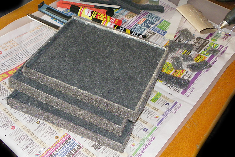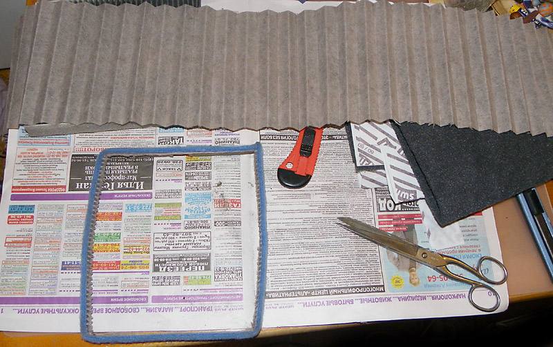 Так же разрезаем фильтр на три части, по бокам сложенных "модулей" приклеиваем пару полосок из ватмана или тонкой картонки.