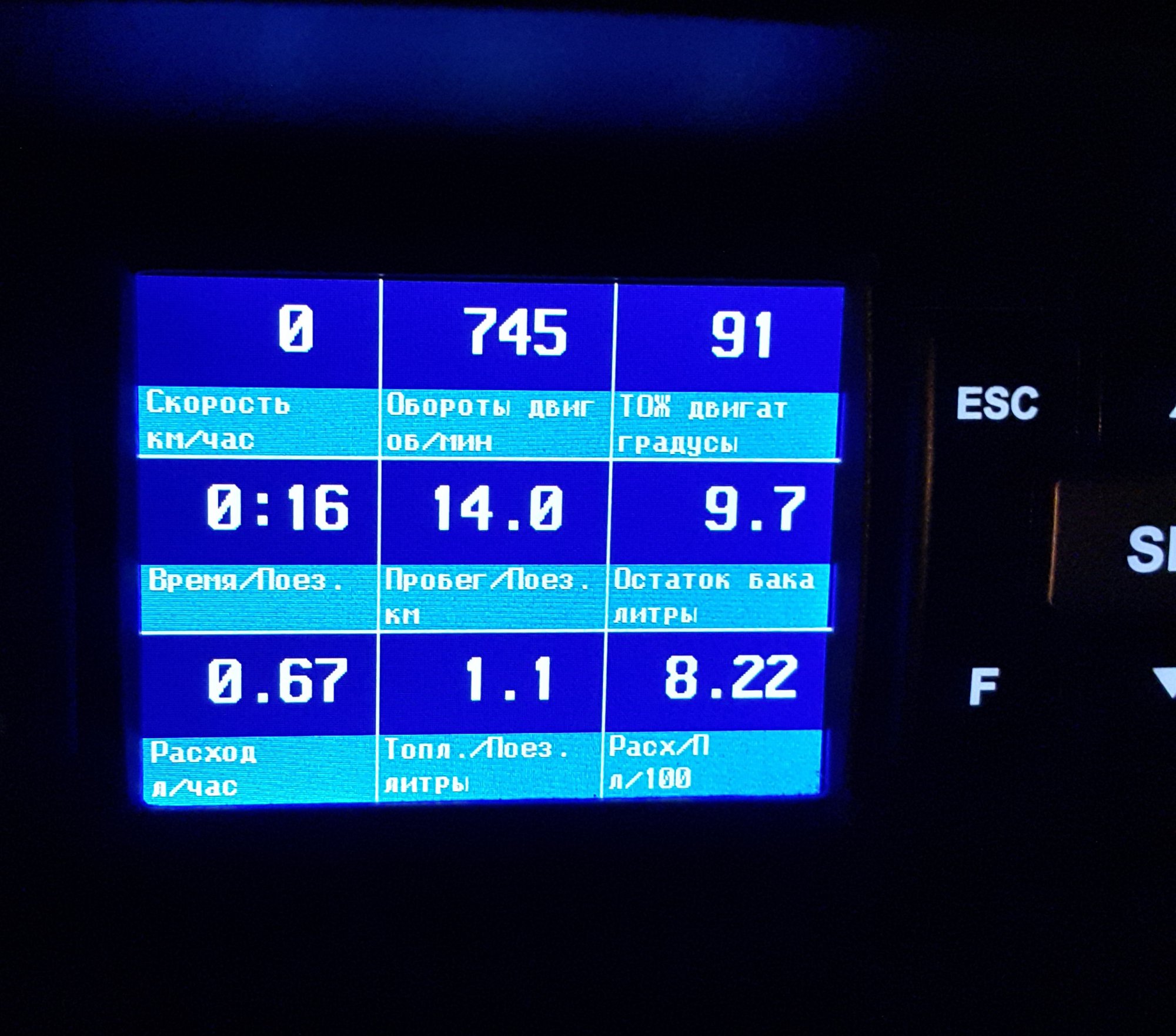 Сейчас по вечернему городу-пригороду сделал контрольный заезд, цифры с мультитроникса на картинке. Бензин 95-ый, двигатель предварительно прогрет до рабочей температуры, температура за бортом +1 +2, всё тает, дороги мокрые и гадкие, проехал 9 км по "трассе" - пригородное шоссе в режиме 70-90 км/ч с парой светофоров и пяток км до дома по практически свободным городским улицам. Вождение "пенсионер-стайл". Да, резина в штатном размере шипованная Нокиа.