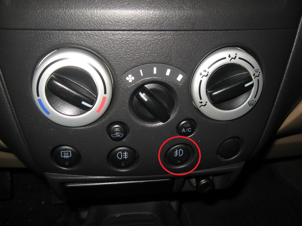 Передняя и задняя противоутманки? Так оно понятно, для задней - кнопка не фиксируемая, а для передних - фиксируемая. Но просто в рестайлинговых Ланах кнопка передних ПТФ стоит слева от руля (у тебя справа), а в дорестайлинговых - в центре, под ручками управления печкой. В дорестайлинговых слева там, где поставил кнопку Ноwый - это скорее всего место под установку кнопки подогрева зеркал.