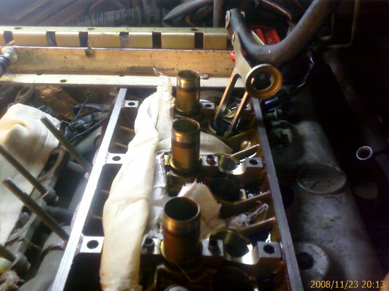 Всё каналы в бошках, входные каналы, свечные отверстия и картер заложить тряпками (у меня при засухаривании сухарики пару раз вылетали во все стороны). Не забываем вытащенные гидрокомпенсаторы хранить в масле, шобы не вытекло. Если вытекло – окунаем в масло и много-много раз нажимаем на пипку в середине – пузырьки воздуха выходят, масло входит.
