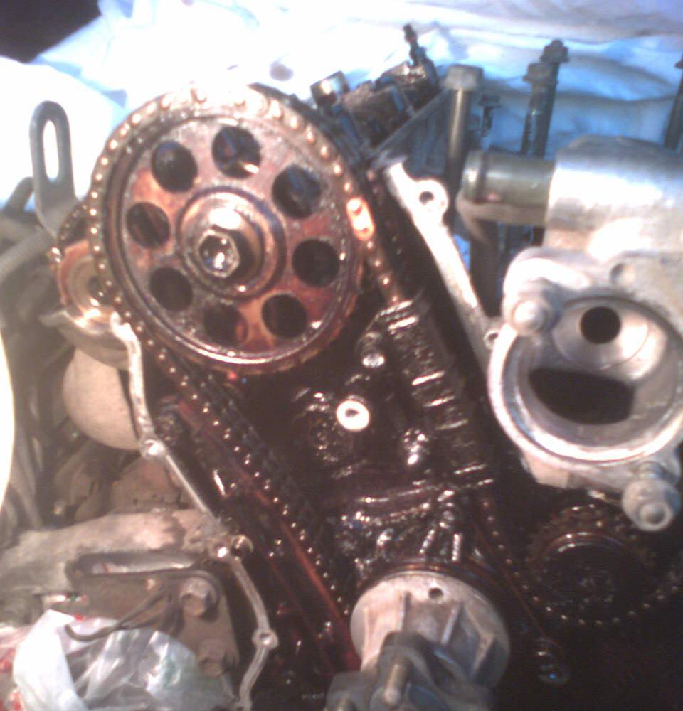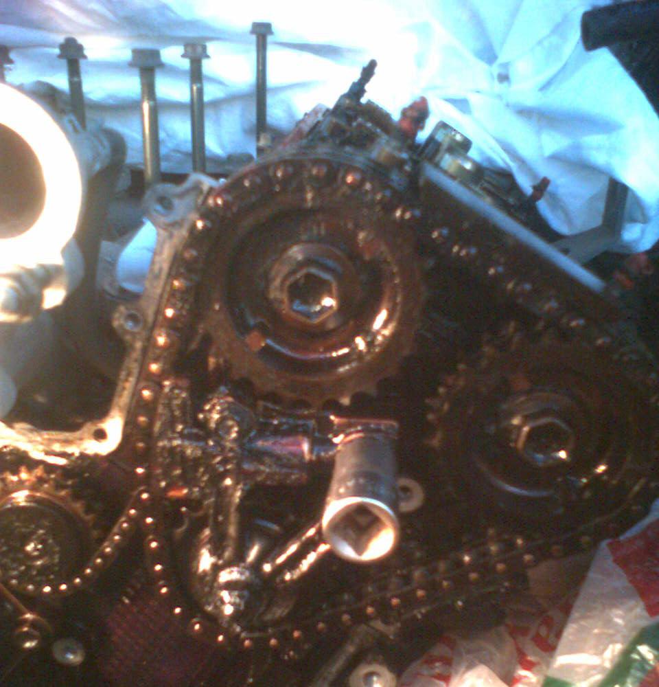 Цепи правильно установил только с третьего раза почему-то. Смотрю на распредвалы левой башки – и вижу что угол между выпуском и напуском градусов 120. Во второй раз всё ок, но между головами угол неправильный. Хотя всё делал по оригинальному английскому мануалу, видимо в какойто момент проскакивала одна из цепей (делал в одиночку, очень неудобно).