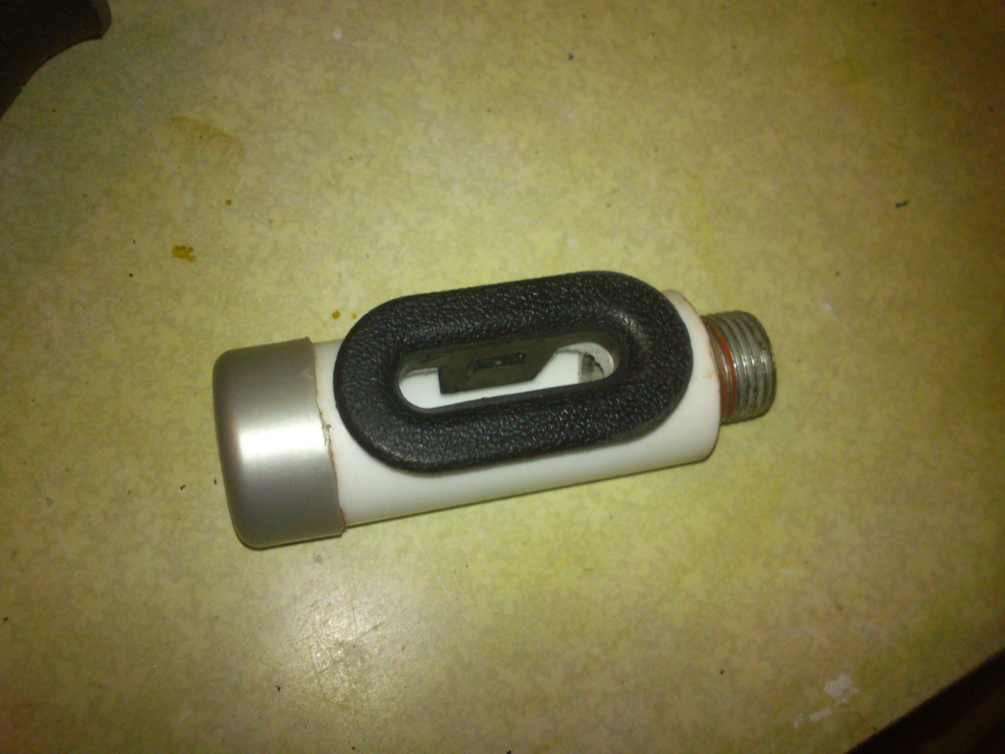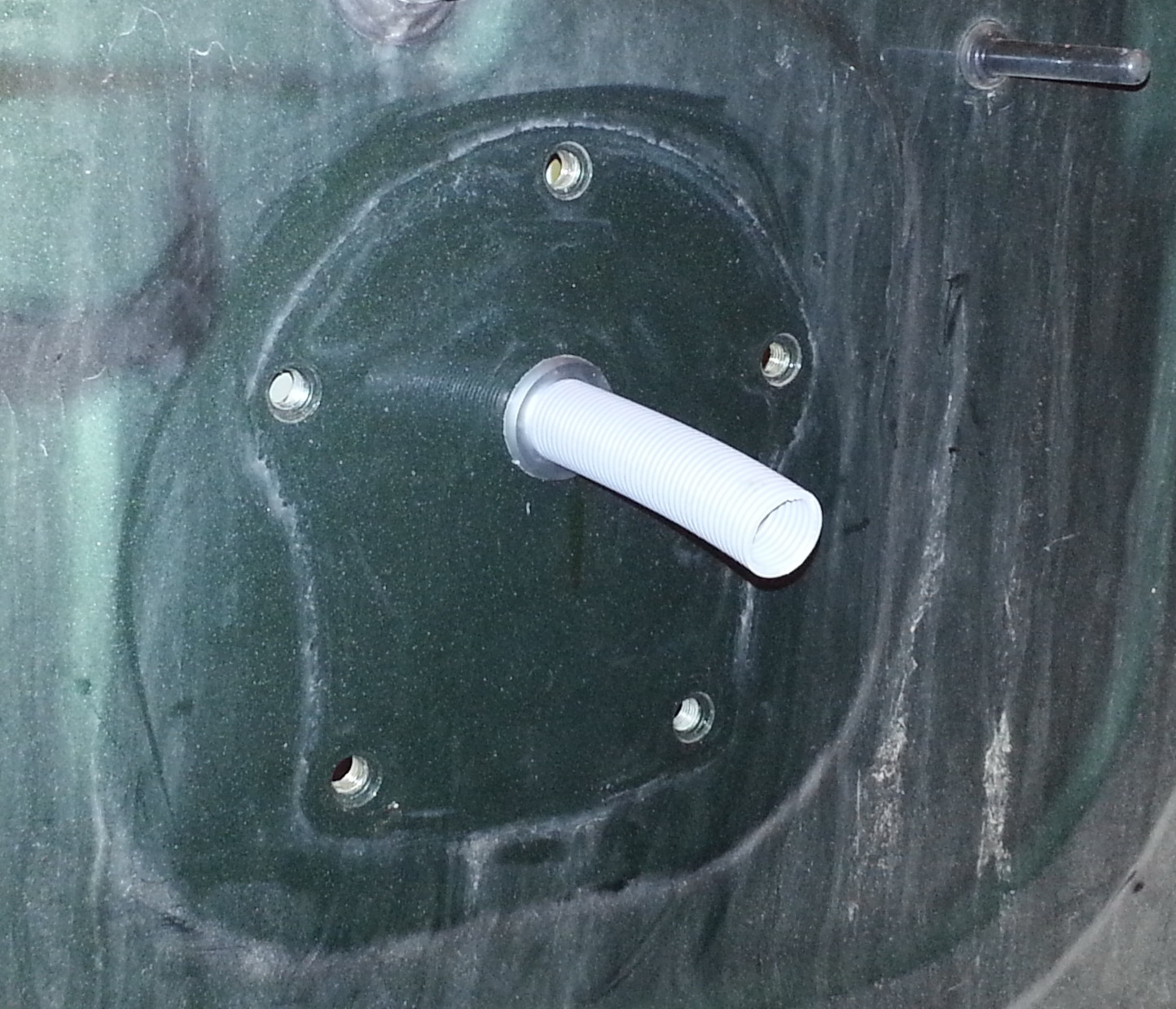 В топку все шланги, толку от них никакого, одна маета. Берём прямую трубу с двумя резьбами, ну типа сгон обычный, диаметр по желанию, но чем больше, тем лучше. У меня теперь 32 мм получается. И просто трубу насквозь через дверь. Необходимым аква затвором будет работать кронштейн запаски. Зато тяга будет просто отличной и никаких геморроев с размещение всего хозяйства внутри двери!
