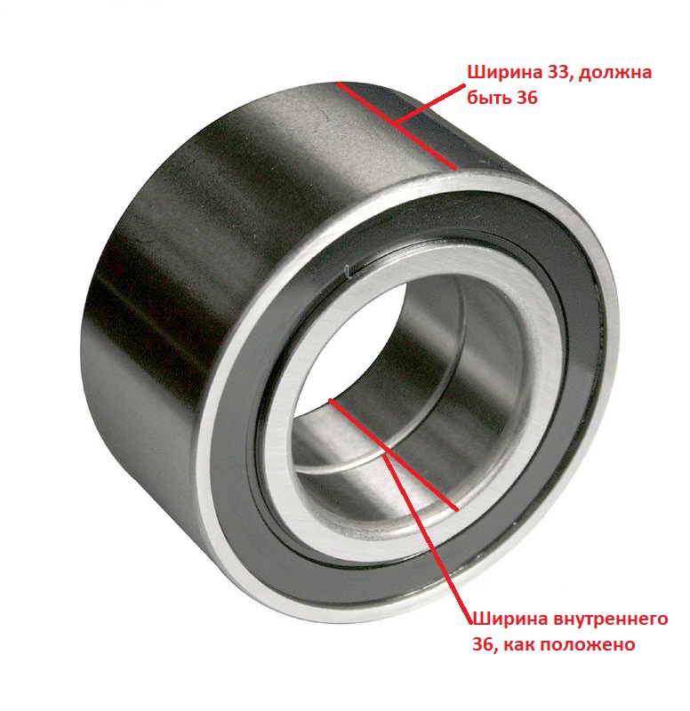 Так вот, он совпадает по всем параметрам, кроме ширины внешнего кольца(33 вместо 36). Мне его поставили конечно, т.к старый развалился в руках у мастера, а уехать как то надо было.