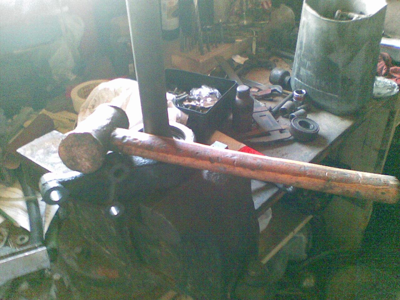 а запресовать новый в опору помогли тиски, а на вал медная кувалдочка