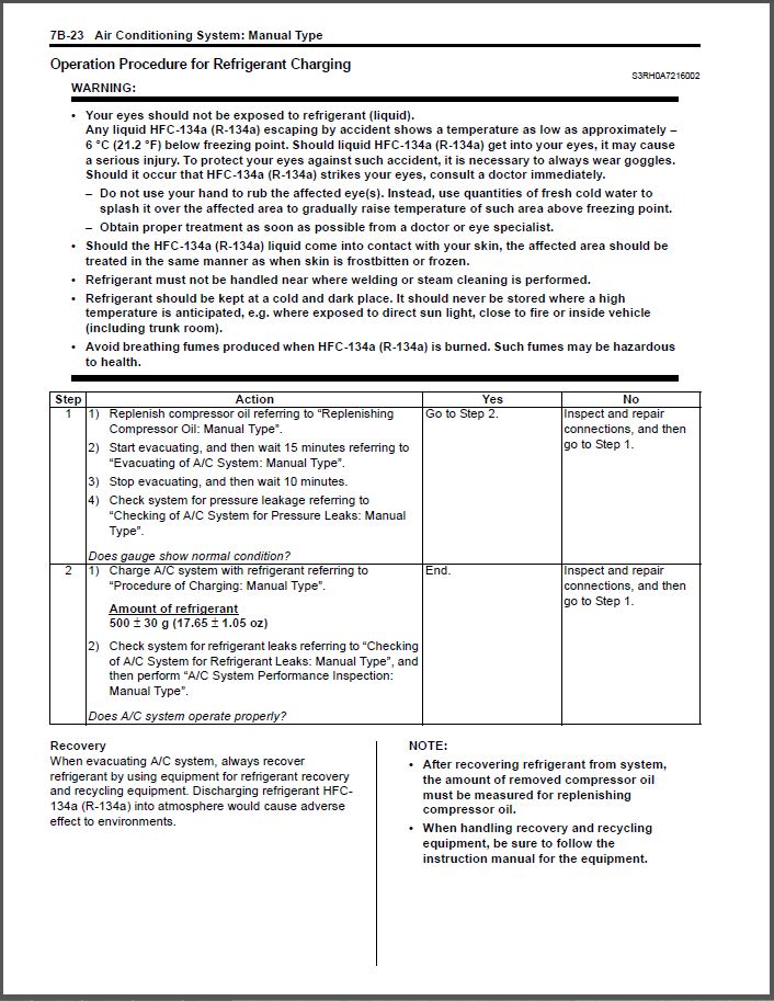 На странице 7B-25 указано количество хладогента Specified amount of refrigerant 500 ± 30 g (17.65 ± 1.05 oz)