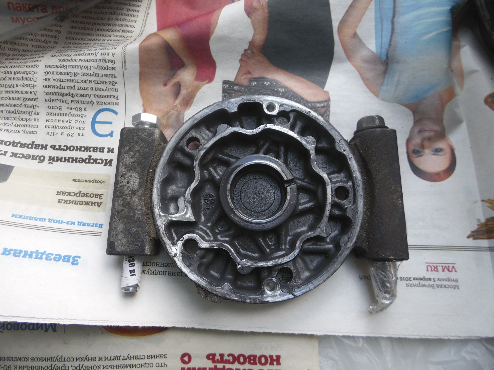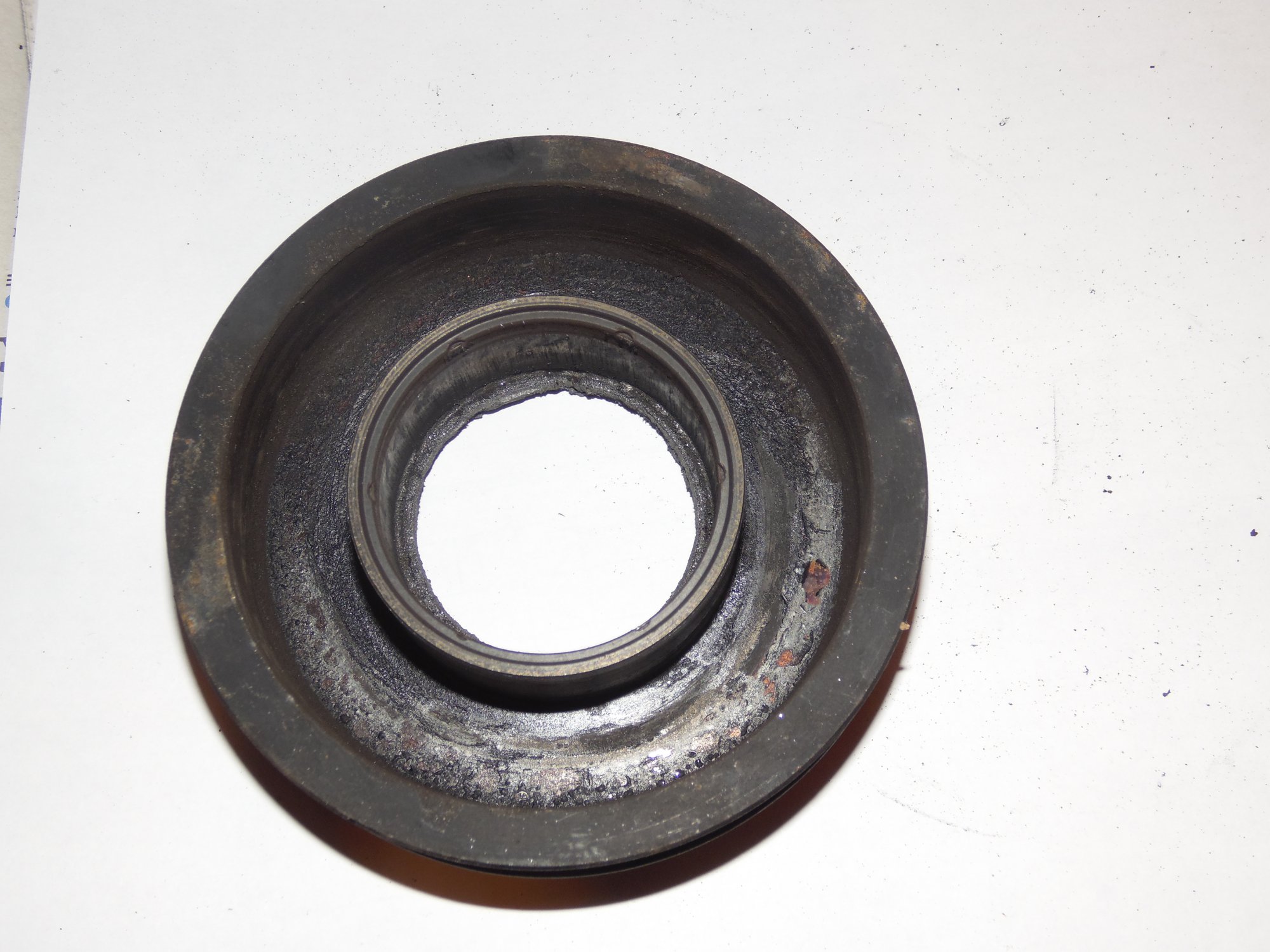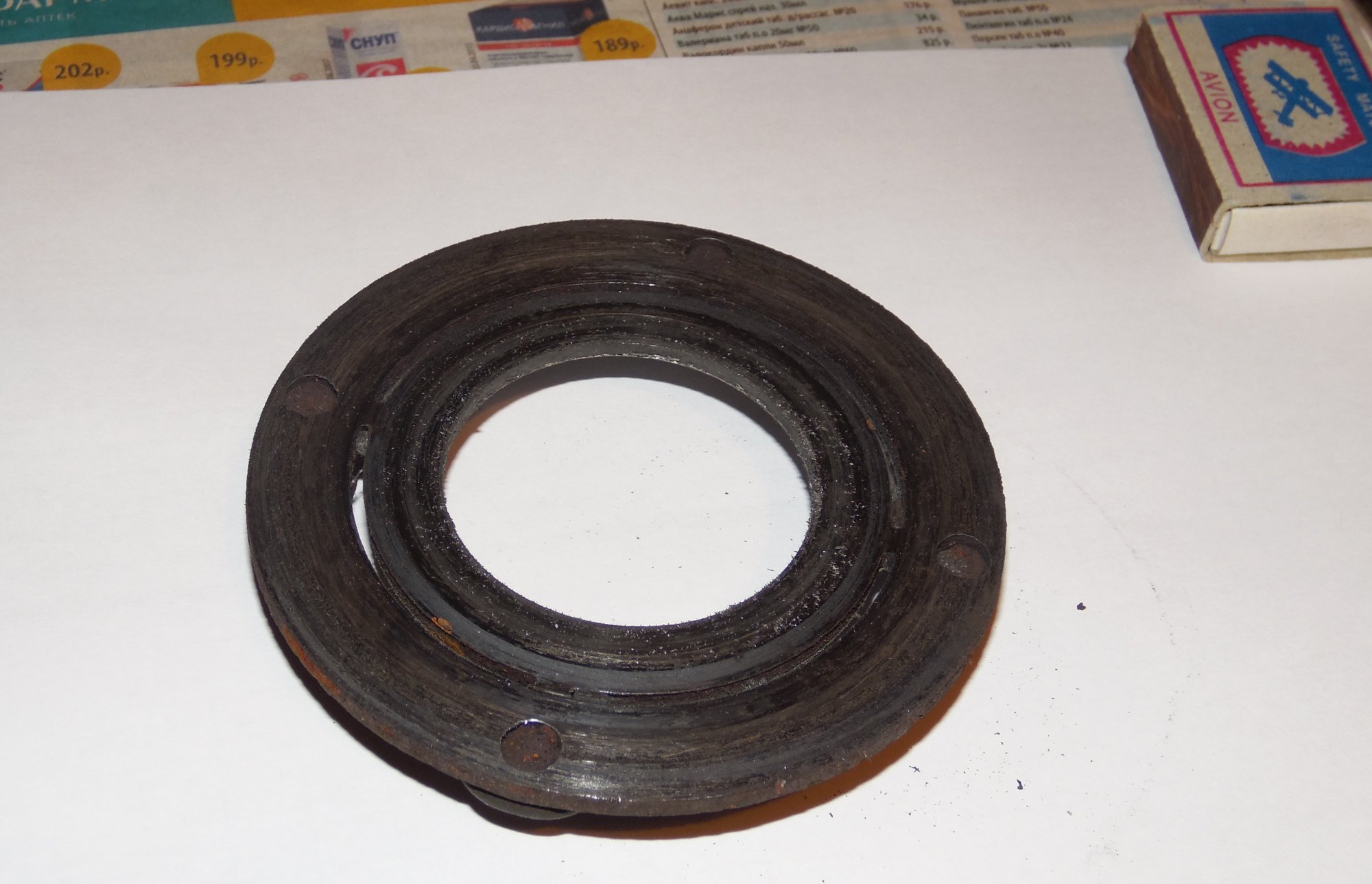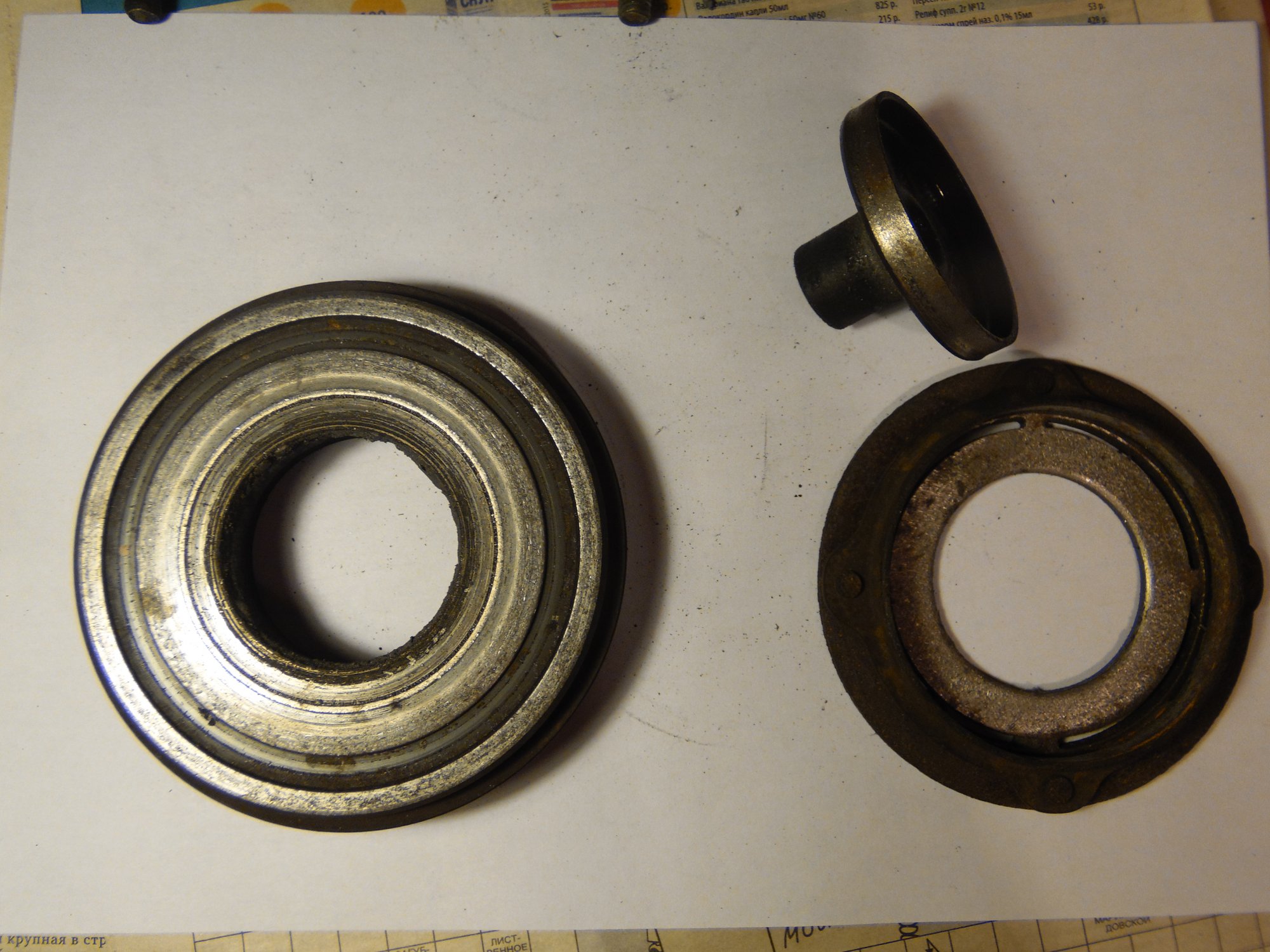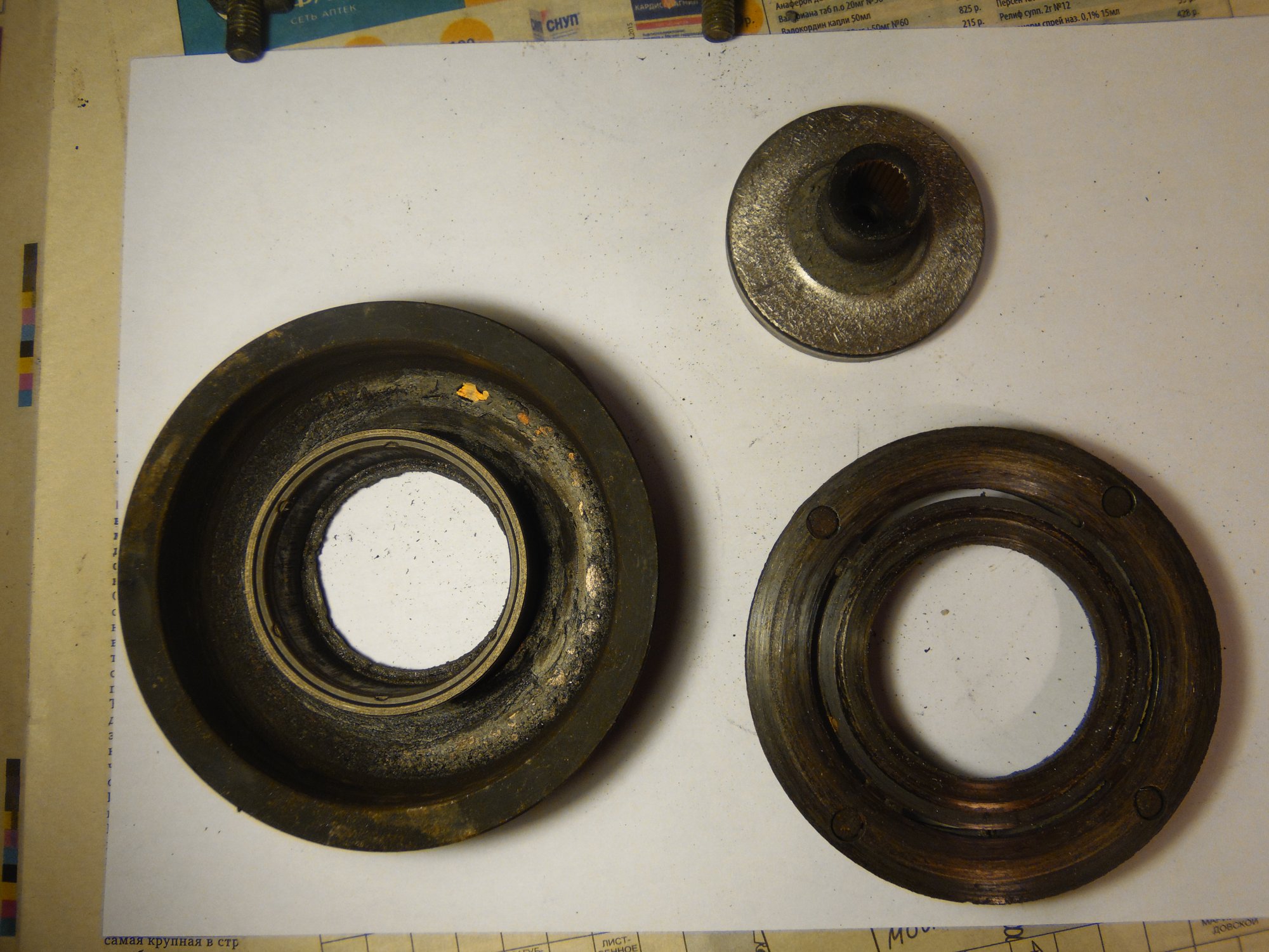 немного фото, возможно по ним можно сделать какой то вывод о чем либо):[DOUBLEPOST=1465604991,1465512884][/DOUBLEPOST]Удалось таки доехать до СТО - по мнению мастера в компрессоре есть выработка - возможно он и клинил , в следствие чего и порвалась резина прижимной пластины а так же виден износ на повернхности шкива которая соприкасается с прижимной пластиной. плюс как видно на фото поверхность электромуфты неровная - видимо плавилась эпоксидная смола, которой залиты витки муфты. по его мнению, на 50% вероятности что в системе имеется стружка от выработки компрессора, по сему еще и всю системку надо промывать и менять осушитель и конденсор .. в общем починка сего узла как четвертая часть стоимости машины обойдется =) как думаете прав-неправ?