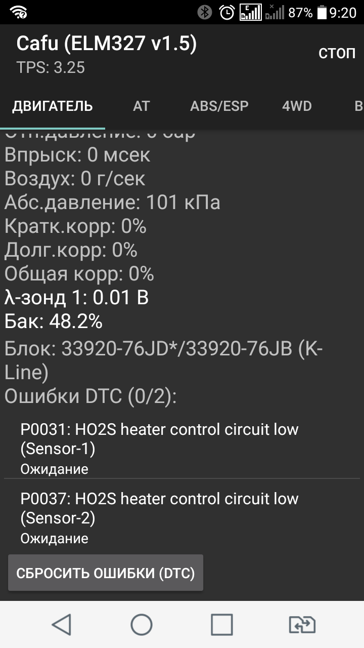 На днях загорелся CHEK. Диагностика вы явила ошибку P0031 (HO2S Heater Control Circuit Low Sensor1)