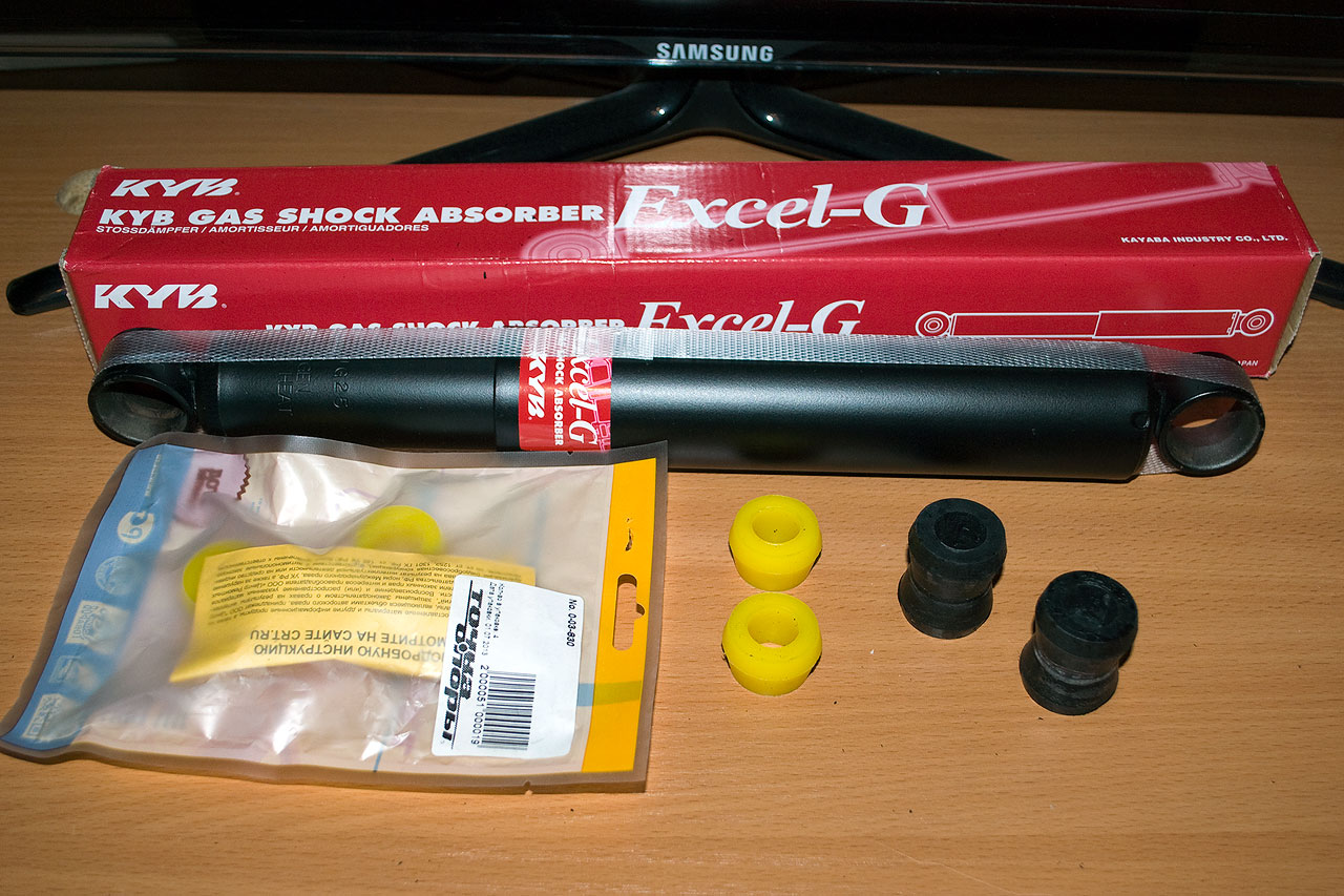 Вот еще вариант полиуретановых "резинок" с номерочком. Проверено лично на KYB Premium 443183 и KYB 343201. Узкая часть конуса на верхнем ухе на треть укорачивалась, иначе не лезет в посадочное и верхний болт перекашивает. Металлические втулки впрессовывались с со старых стоковых амортизаторов.составные полиуретановые втулки от ВАЗ 2101-2107 и от Нивы нормально встают в распор и превосходно эксплуатируются