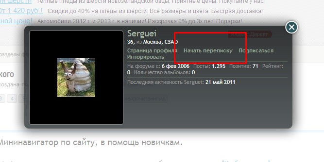 3. Написать личное сообщение другому форумчанину можно разными способами: