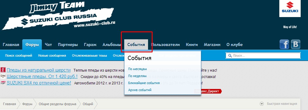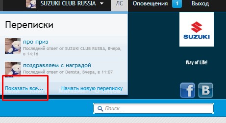 для этого внизу экрана кликнуть на надпись SUZUKI CLUB RUSSIA