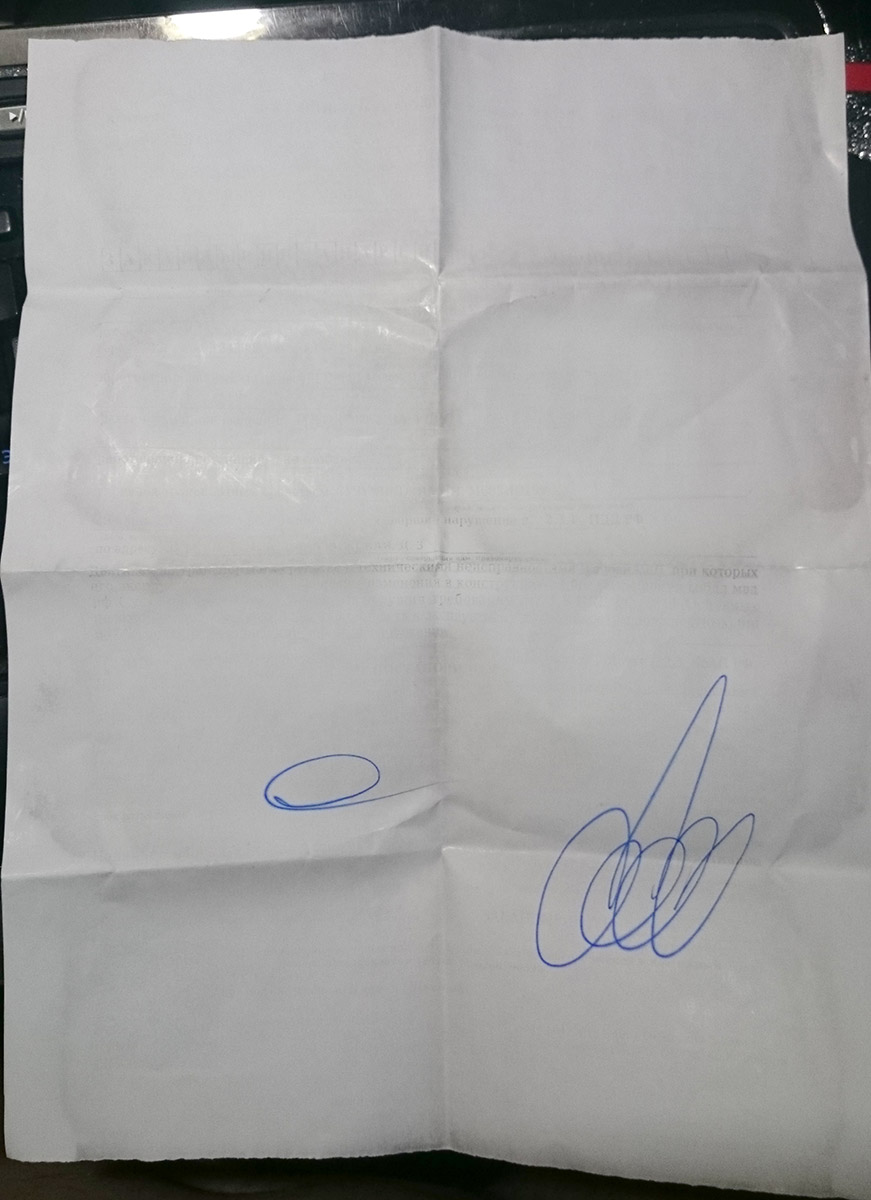 P.S. а я не рассказывал про протокол кстати? Таки вот, нахожу этот протокол, со штрафом 500 рублей, ну с которого всё и завертелось, о т к р ы в а ю эту бумажку и ..... помните как в фильме Гений, с Абдуловым, он подписывает бумажку, а подпись через некоторое время исчезает? Таки вот у меня так же, только наоборот, на чистом листе бумаги только закорючка мента и моя подпись! А весь лист чист как слеза ребёнка! Круто! Я вспомнил как удивился прогрессу как они мне копию с протокола сделали. Копир оказался аналогичным чеку в кассе с фотобумагой, которая исчезает через какое-то время! Зашибись? Кстати прикольно, подпись мента просто член с шарами! Он мне уже тогда считай фак показал на протоколе! Артисты! Если б не мотор, в суде чисто развлекаловка была бы! ))))