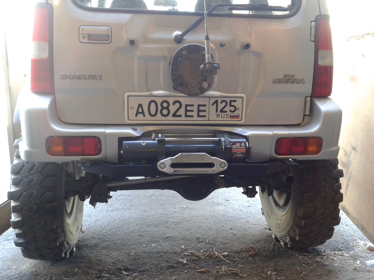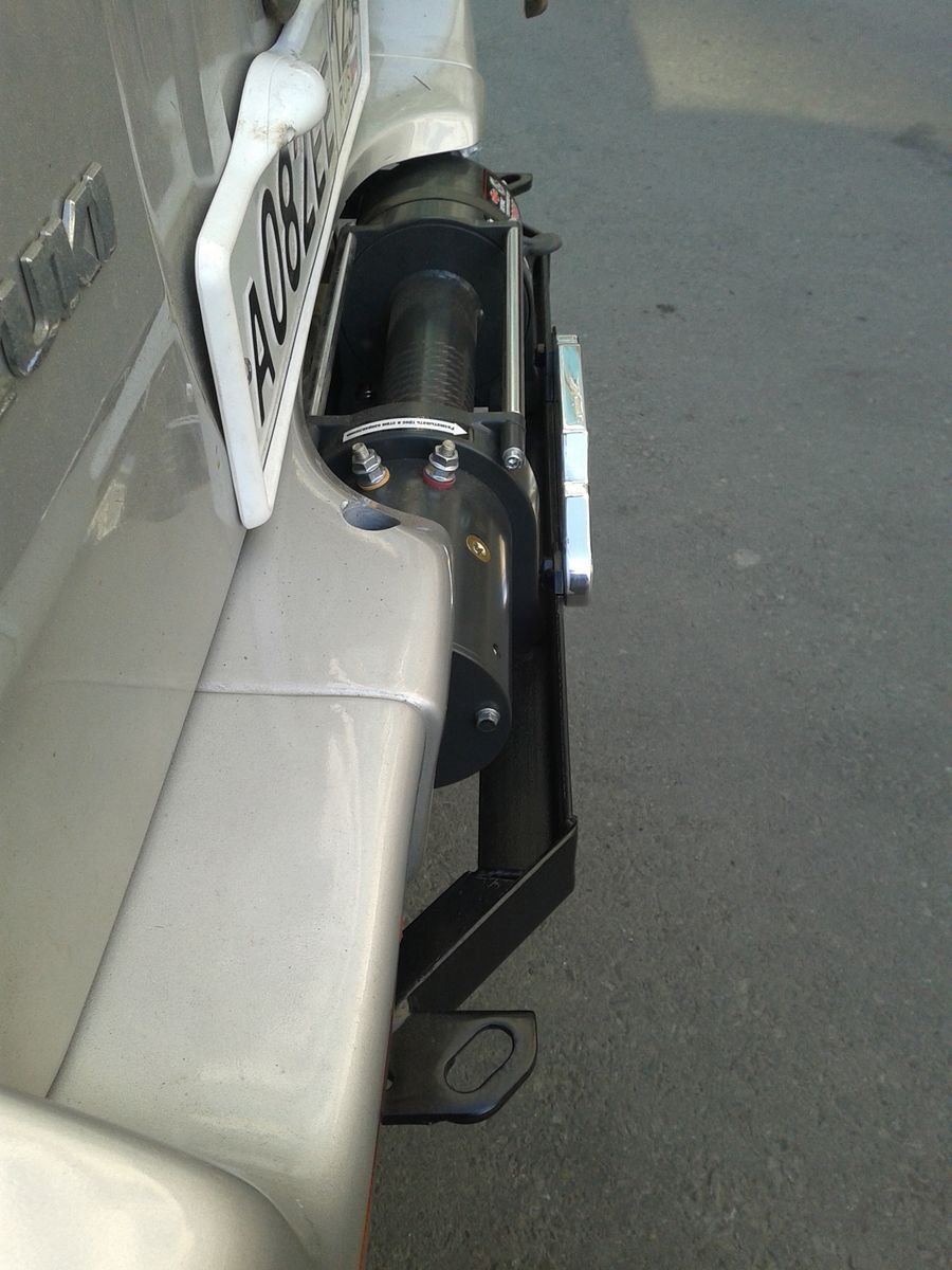 у меня стоит. т.к. в заду у джимника нет поперечин, то прилось их вваривать и по центру вешать лебедку вверх ногами. стоит камап-6000 короткий.А кто-нибудь еще ставил лебедку на попу? Выложите фотки с описанием - интересно