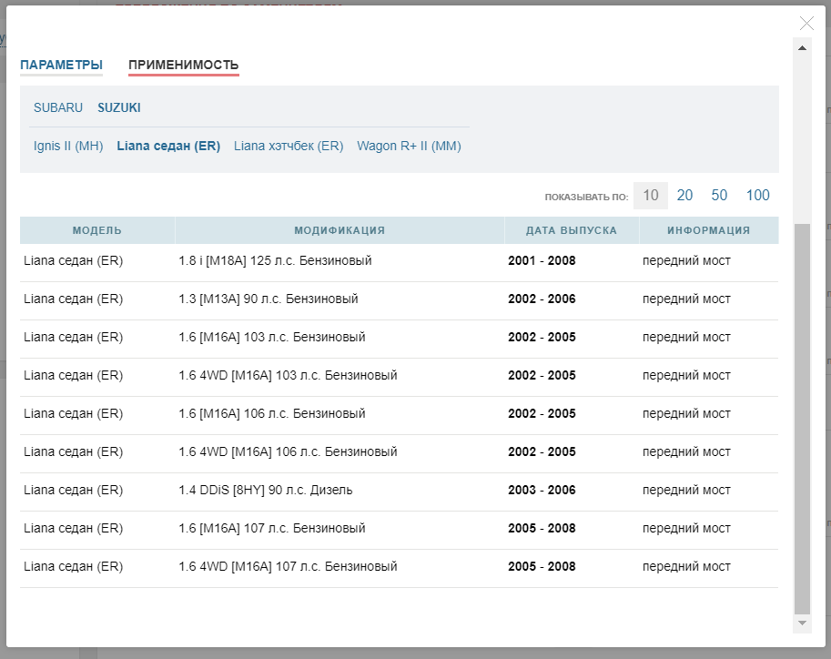 В Exist в подборе к автомобилю часто указаны размеры подшипников