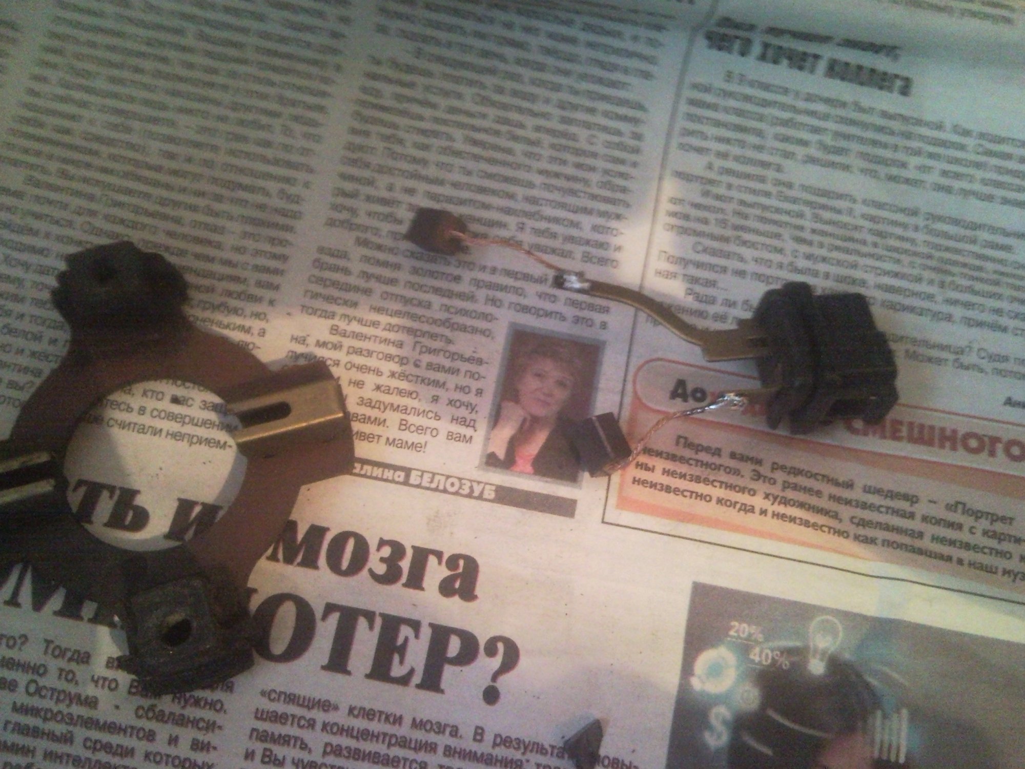 Расцелую при встрече!!!!!!!!!!! На даче скоротал 30 минут) Снятие печки доведено до автоматизма. е-мое щетки от гены ГАЗ(без таблеточные) за 34 рубля идеально подходят. Нужно только опилить их по длине и перепаять на старые "папы". У меня не было вообще одной щетки. Разобрал и диву дался как он вообще мог работать. Внутри все в опилках. Вычистил, перепаял, собрал (пружинки ставил естественно сузучьи). Дует "мама не горюй". только шелестит наверное новые щетки обрабатываются))) По плану было только снять печку и провести ревизию) Никак не думал что так быстро получится)Подходят от Волги(щётки гены) , только пилить нужно где то 5 мм