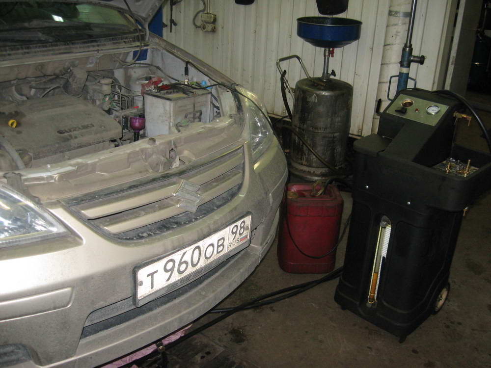 Итак, заехал вчера к на сервис и... поменяли они мне усё. Даже сфоткать процесс замены и их "секретный" агрегат для замены масла в АКПП разрешили сфоткать любезно (вааще мне этот сервис "Сузуки-Нева" на Дунайском пр. и по ценам, и по качеству обслуживания нравится, особенно после сравнения цен с другими дилерами и нареканиями на работу других).