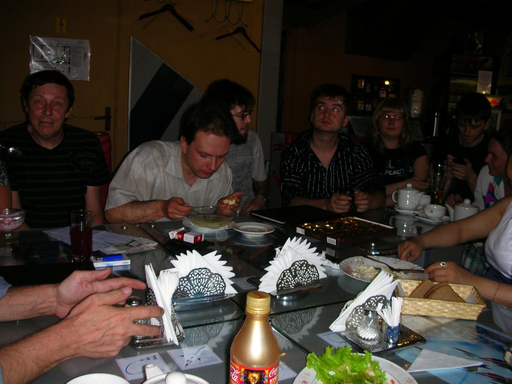 Фактически вчера мы окупировали всё кафе, так как свободным остался только один ма-а-аленький столик, остальные мы сдвинули в одну кучку.