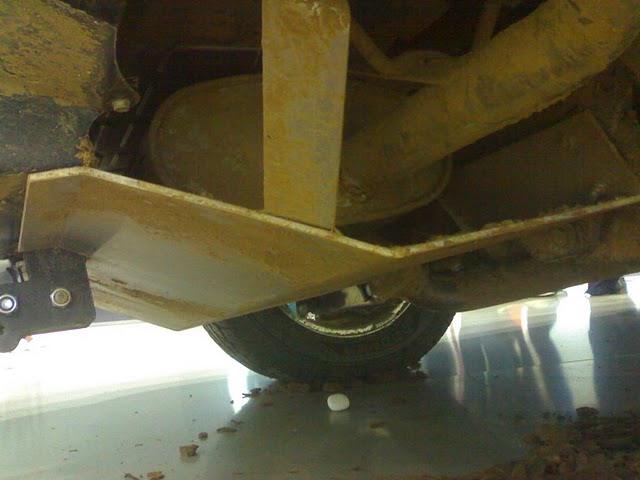 снег, который попал при внедорожной езде под защиту двигателя, полностью
