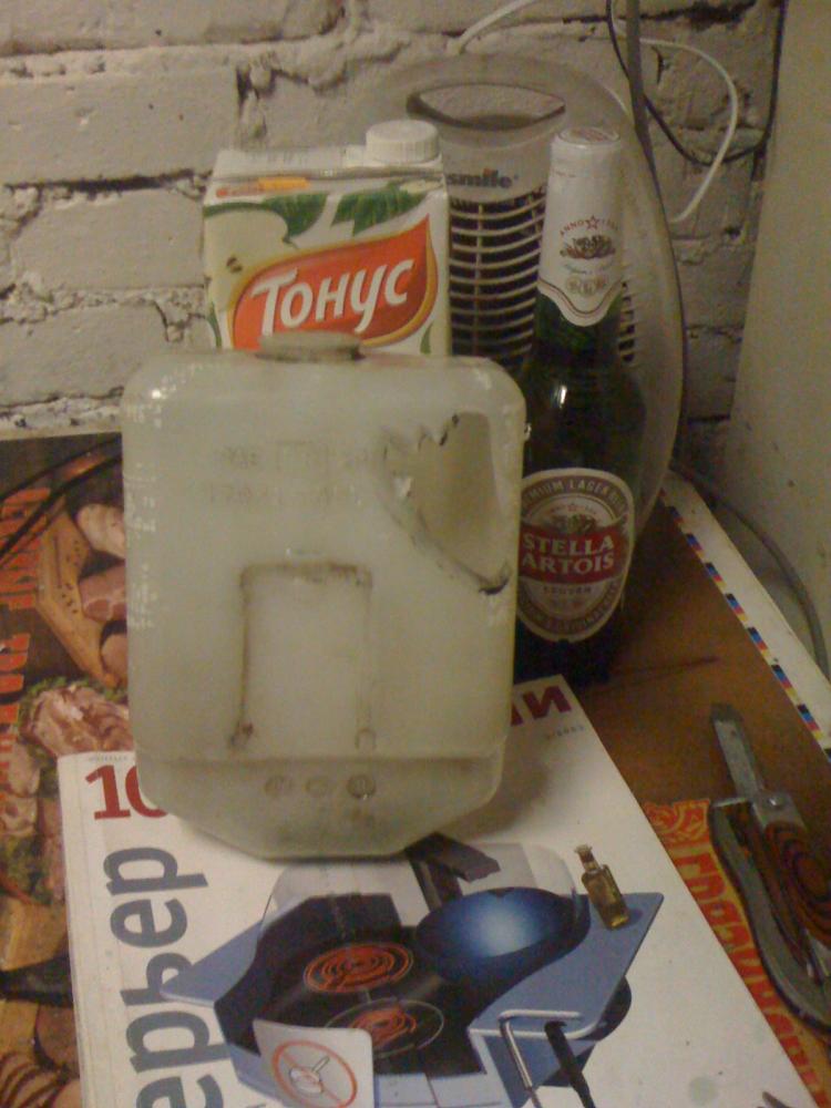 Расширительный бачок валялся на ремнях мотора, он был в плачевном состоянии.