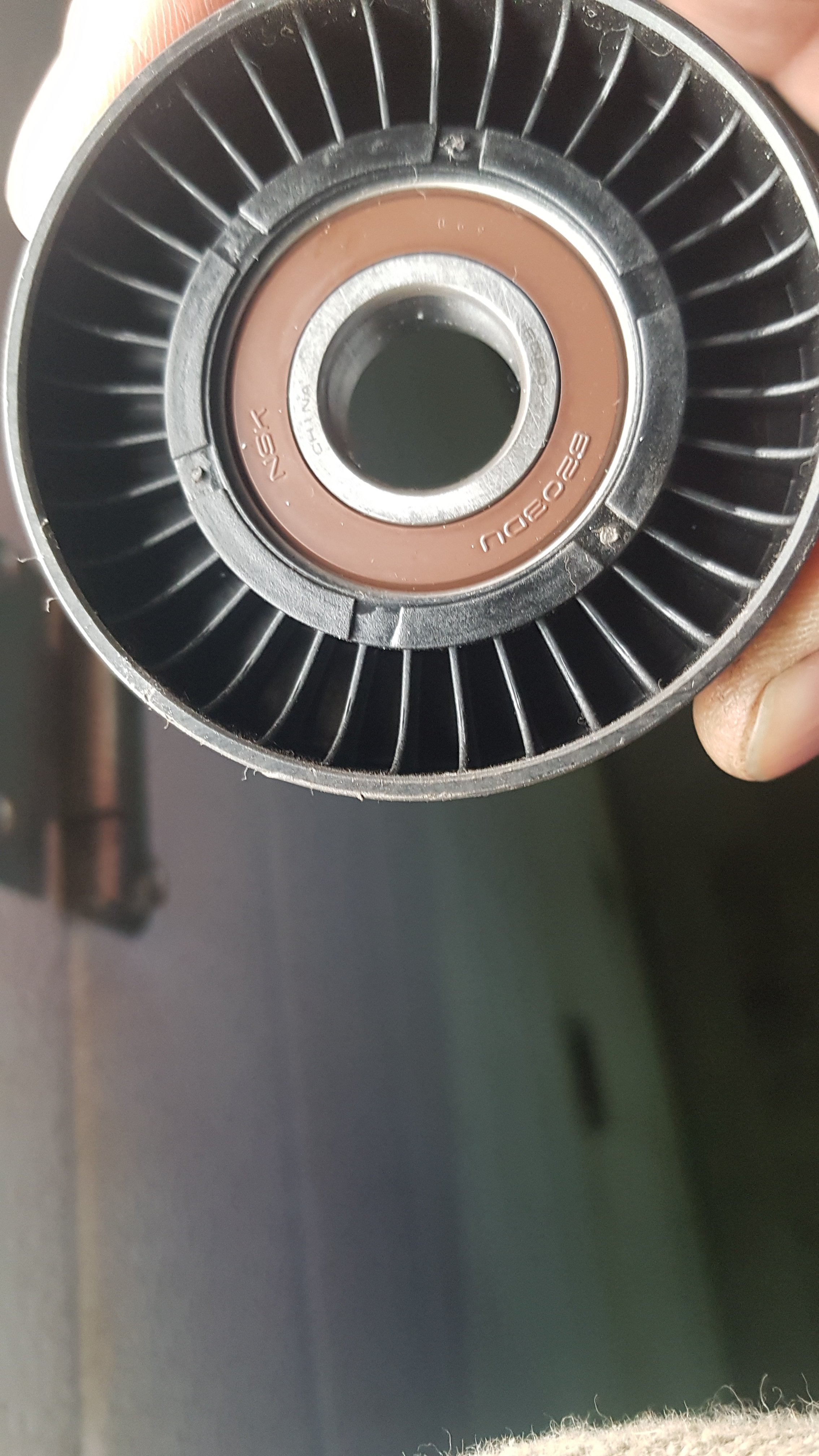 Так вот натяжитель визуально пока в норме. Но китайский ролик на нем уже не выдерживал критики- люфтил. Видимо был без смазки.