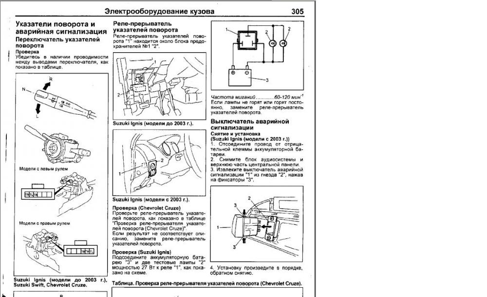 В режиме указания поворотов реле-прерыватель питается от предохранителя №27(TURN BACK), а в режиме аварийки от №20(HAZARD).