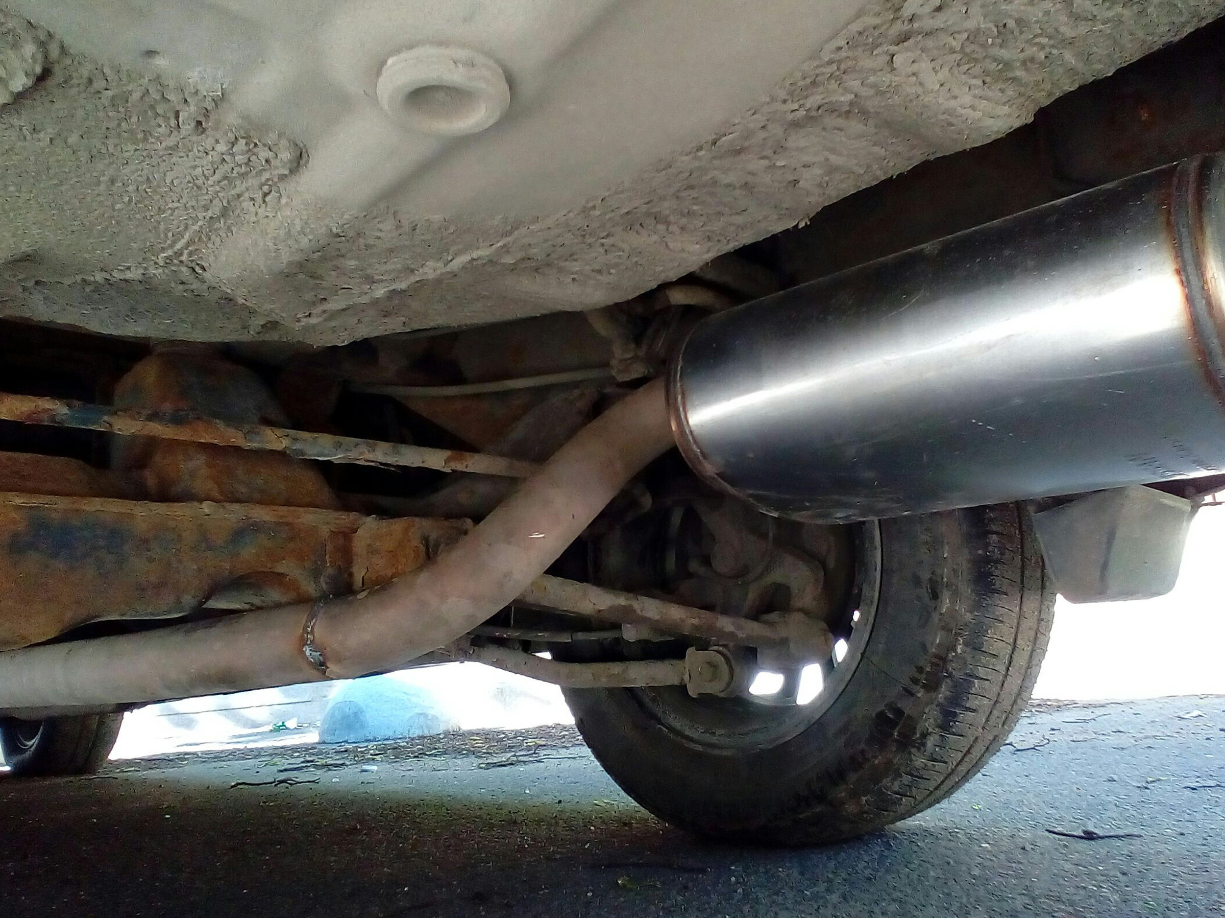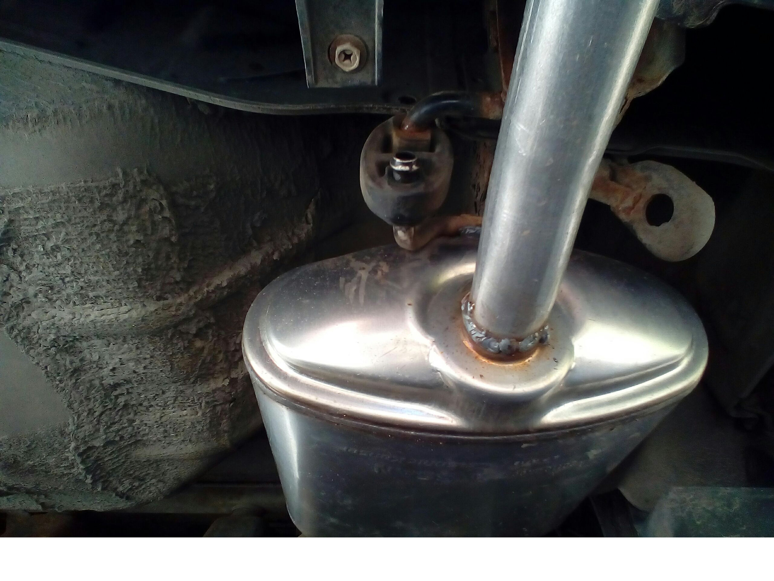 Заменил, на все дела 40 минут ушло - подняли на подъёмник, прикинули и с запасом отрезали болгаркой трубу у конечного глушака, сняли с креплений (резинки были нормальные, их и использовали опять), переварили роги со старого на новый, как и советовал здесь одноклубник (в нём они с меньшим разлётом рогов, кстати и сам глушак оказался поменьше старого, но выходы труб пропорциональны поэтому это никак не сказалось), там где одно крепление ничего не пришлось менять, потом на месте приложили и ещё немного отрезали от старой трубы, раструб от нового зашёл на трубу очень плотно, с усилием, пришлось даже его чуть подбивать чтобы до конца, для гарантии поставили хомут (хотя и без него вполне можно было обойтись) - ну и всё.