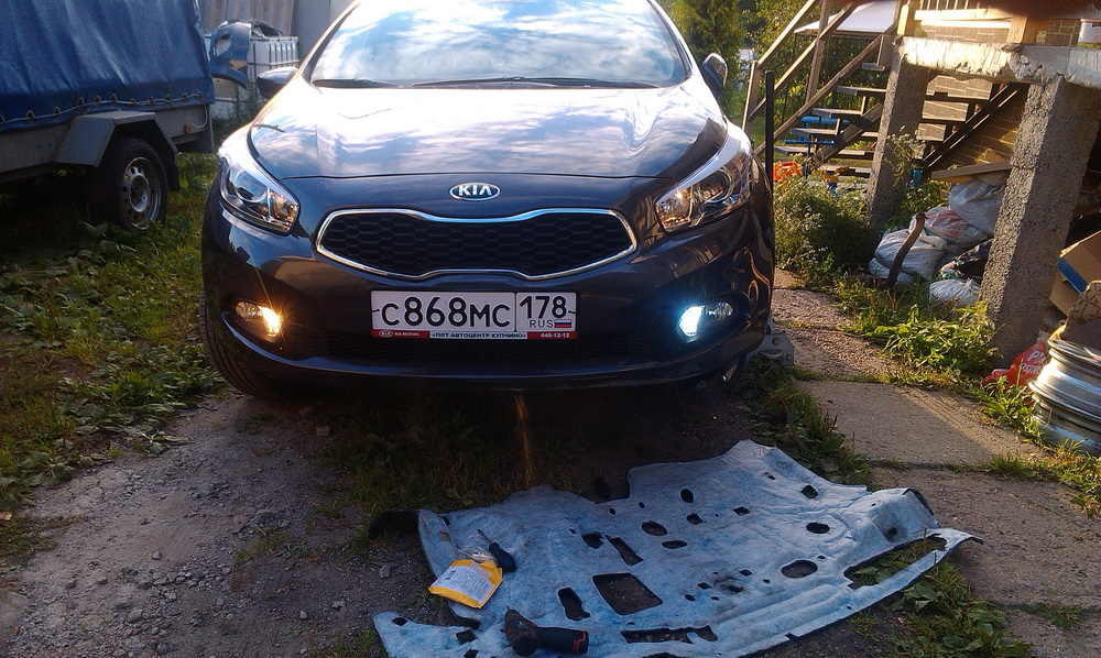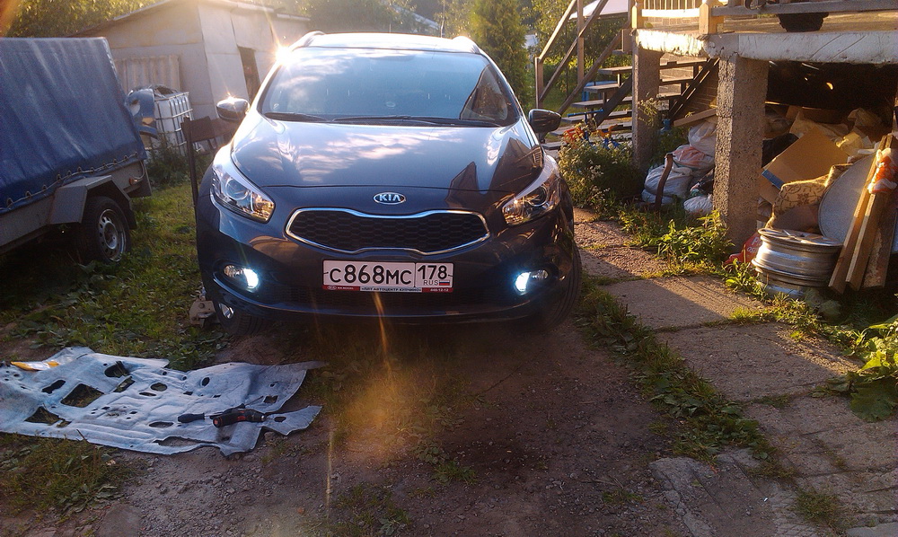 А ДХО на Киа Сид совмещены с ПТФ: в одном плафоне стоят и ДХО и ПТФ:
