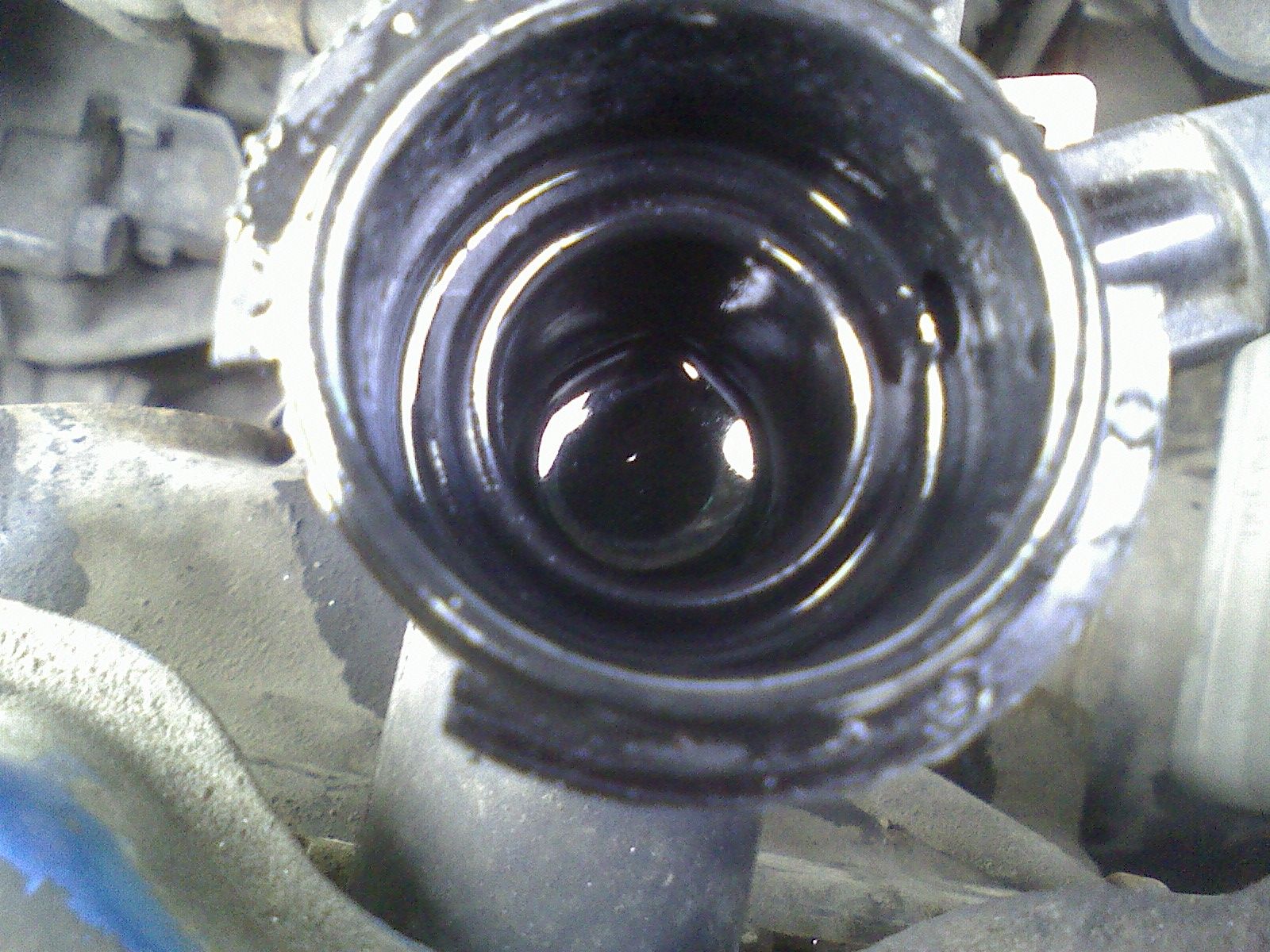 Чему удивляться, если, забрав с СТО можно увидеть вот такую картину:мастер, который болт мимо резьбы закрутил