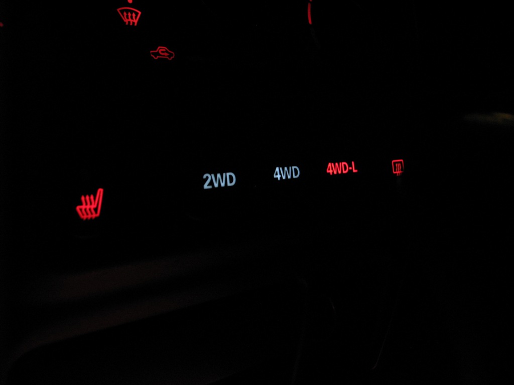 Не согласен. Осветил. (Думается, не надо объяснять, что засветка равномерная, сочная? Требуется два светодиода. Я прямо на резинку намотал, без паяльника, сидя в машине за 5 мин.!)Кнопки управления раздаткой просто так, в лоб, заменой ламп на светодиоды не осветишь
