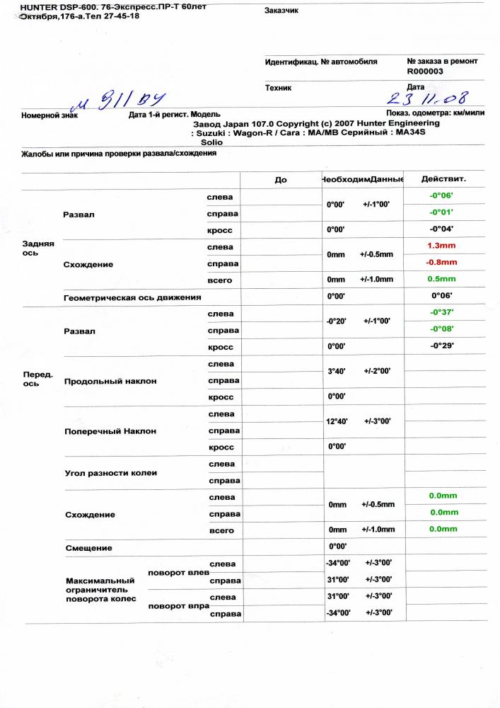 Так же прилагаю нормы углов развала-схождения на SWR-Solio в 34-м кузове.
