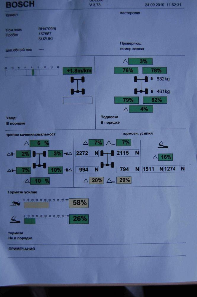 Ответ: Диагностика амортизаторов на стенде. Коментарии. Яков написал(а): Выполнил диагностику на стенде - получил результаты, а вот с что с ними делать как их оценить? Прошу ваших коментариев, советов. Нажмите для раскрытия... Ну все же написано. Подвеска в порядке, с тормозами разберись, скорее всего просто колодки поменять надо.
