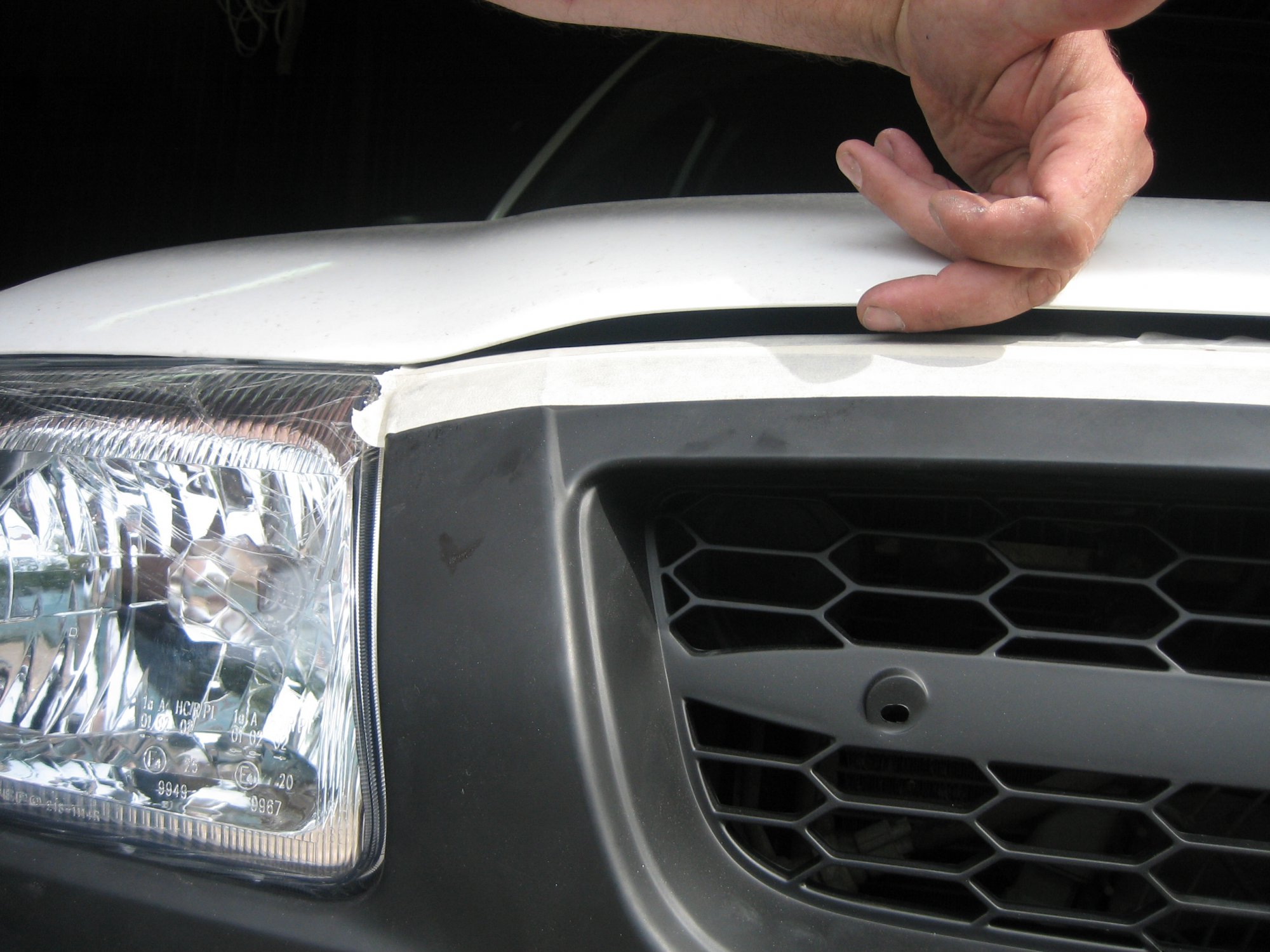 Ну да . Наклевал верх "мордашки" для лучшего сцепления , полиэтилен на капот , "волосянку" на пластик и капот прикрыл . Потом облагораживал более тонкими методами . Сузучий логотип выкинул нахрен и решетку на стекольный клей .шпаклевку от решетки тянул