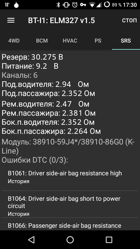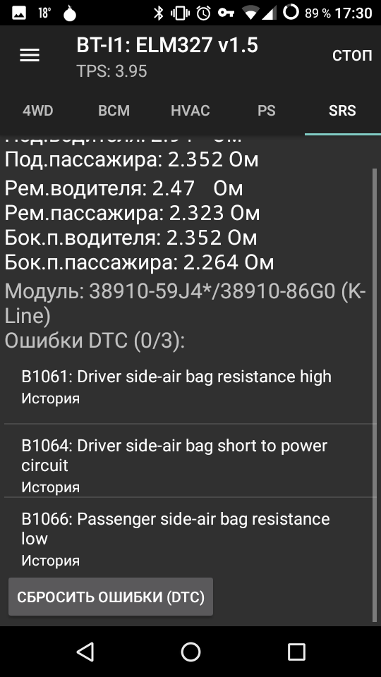 ELM327 выдает ошиьки B1061, B1064, B1066