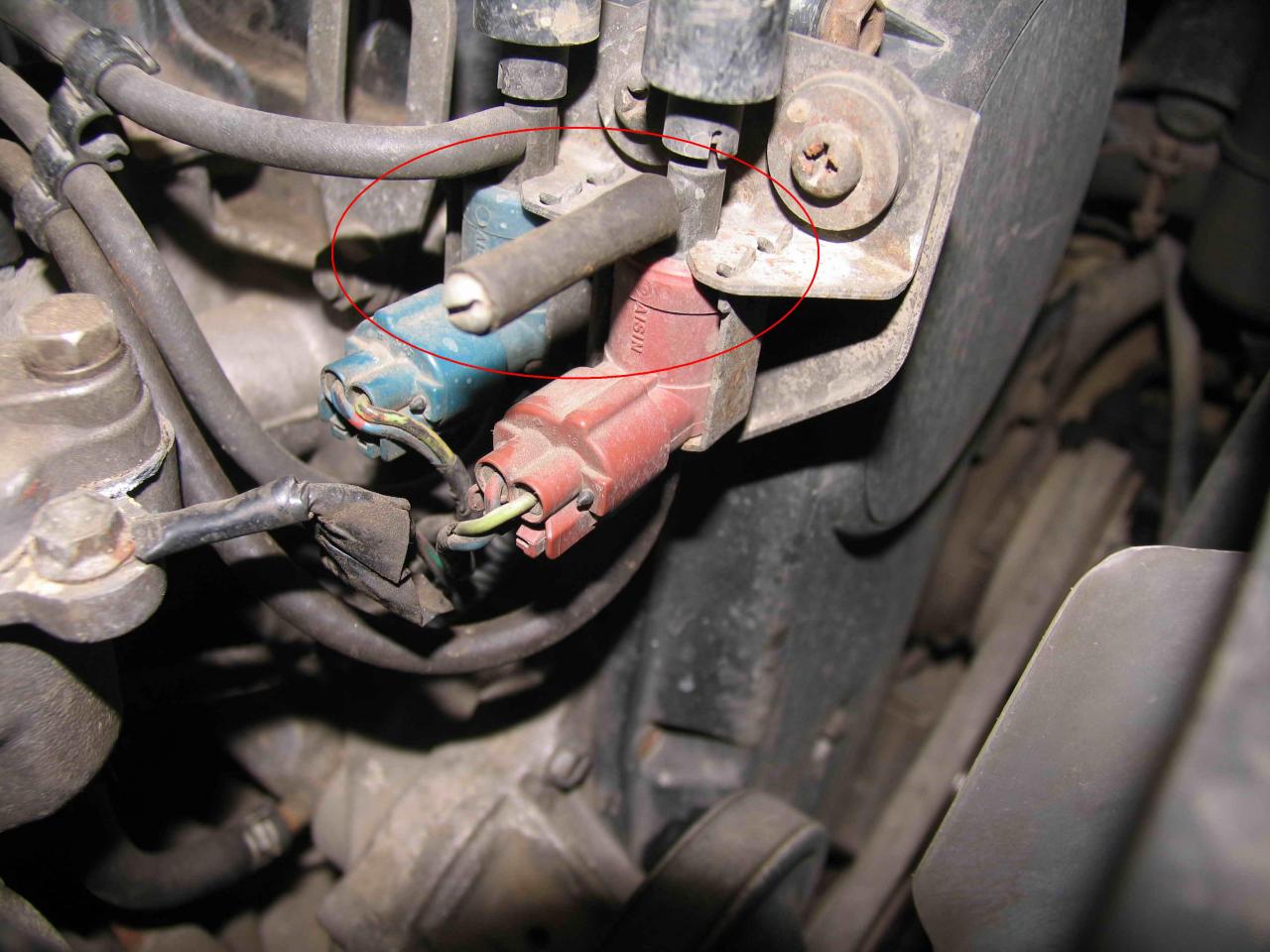 Помогите разобраться с электропневмоклапаном, вот на фото он изображен, на нем шланг с заглушкой. Перечитал инструкцию, но все равно так и не смог разобраться куда трубка от него должна подключаться. Suzuki Sidekick, 3 дв, G16A, 91г.