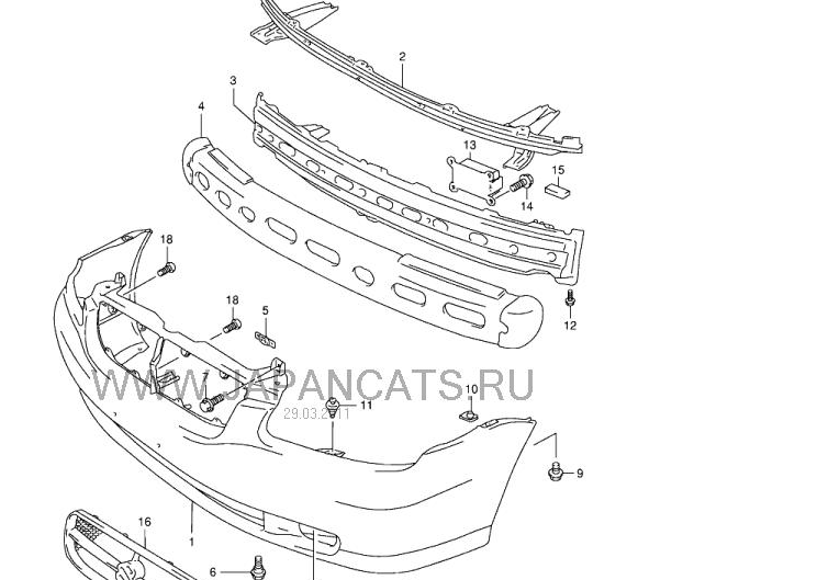 Ищу усилитель переднего бампера и абсорбер(пенопласт в бампере),на рисунке под номером 3 и 4, SUZUKI BALENO 2000 г., Посмотреть вложение 179374