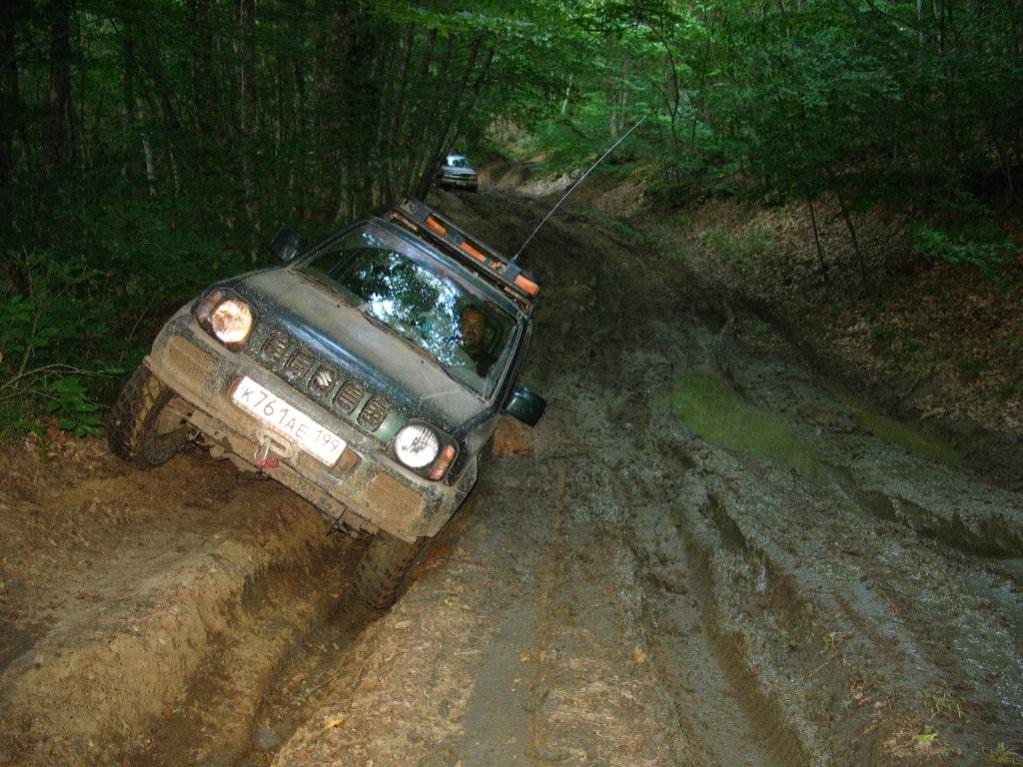 Для Джима это закончилось лопнувшей передней клюшкой, пропавшим ручником, треснувшей задней лампой, погнутой накладкой порога, поцарапанным о дерево бампером, появившимся люфтом в правом переднем колесе, намокнувшим полом салона (пока я разматывал лебёдку, пытаясь вызволить лежащего почти на боку в болоте Джима), и, в-принципе, полностью уделанными в г...вно салоном и кузовом.