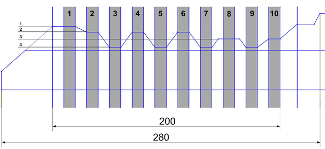 Далее, надеюсь смысл понятен: нужно произвольно переставить местами секреты, заново перерисовать, - выпилить ключ (сразу оговорюсь, сувальды имеют одинаковую конструкцию, получается, подточив внутреннюю часть сувальды размером 4, можно сделать 3, 2 или 1... Фото ниже будет).
