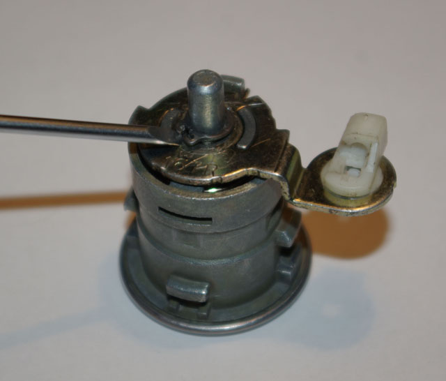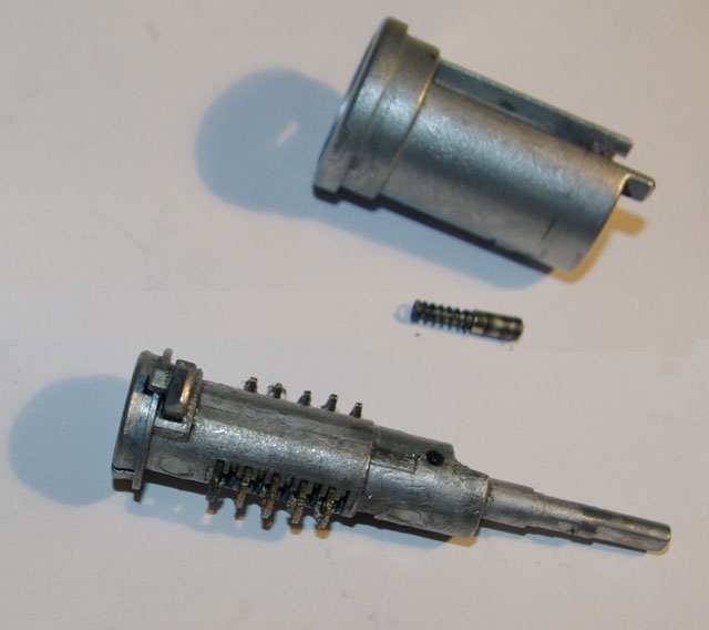 Личинка, в отличии от дверной, полностью разборная, нужно аккуратно отогнуть места завальцовки и осторожно снять верхний кожух, что бы не потерять шторку с пружинкой.