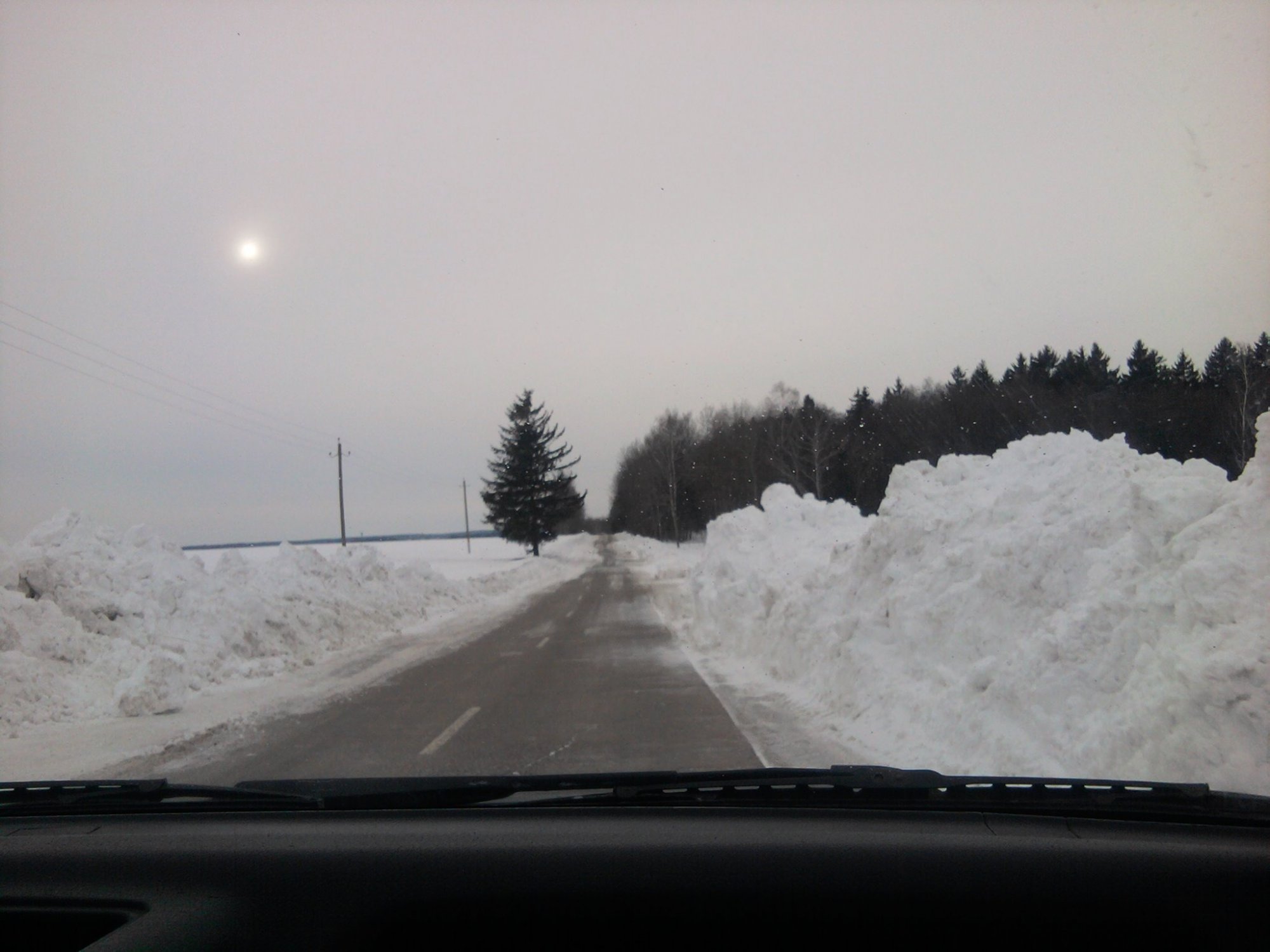 Вот как у нас выглядят загороднии дороги после снегопада. Военные почистили.