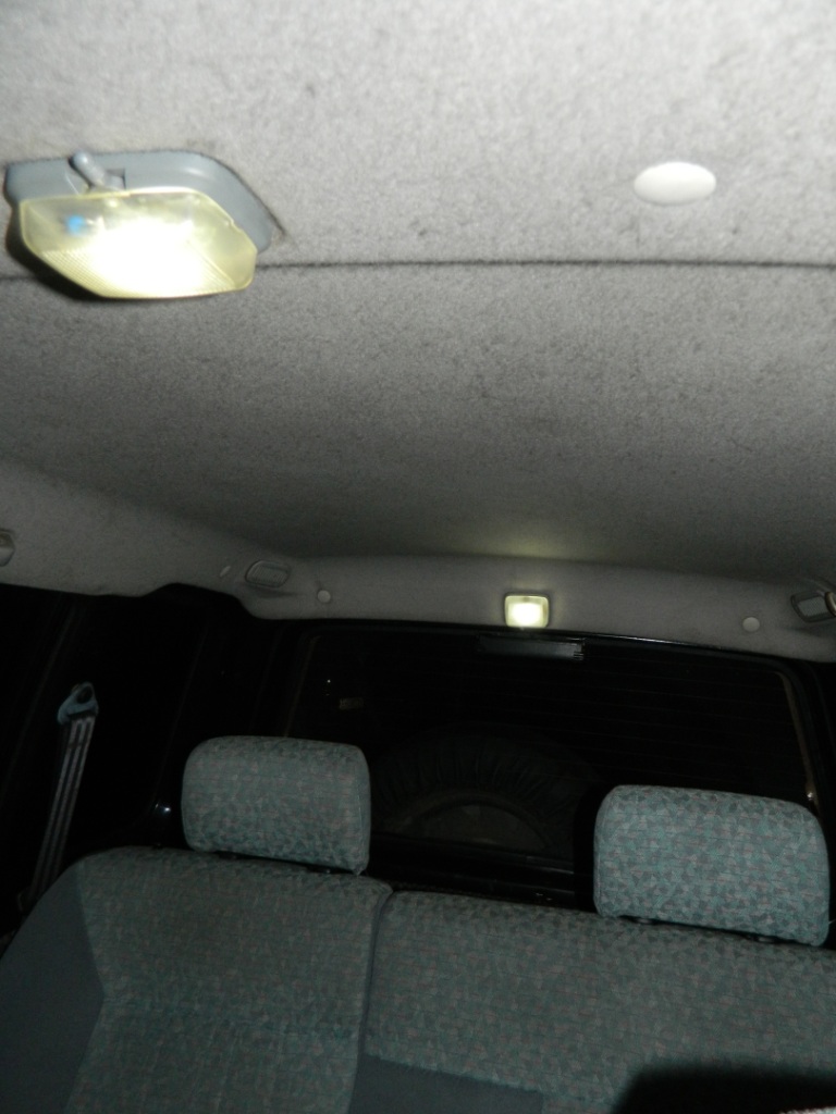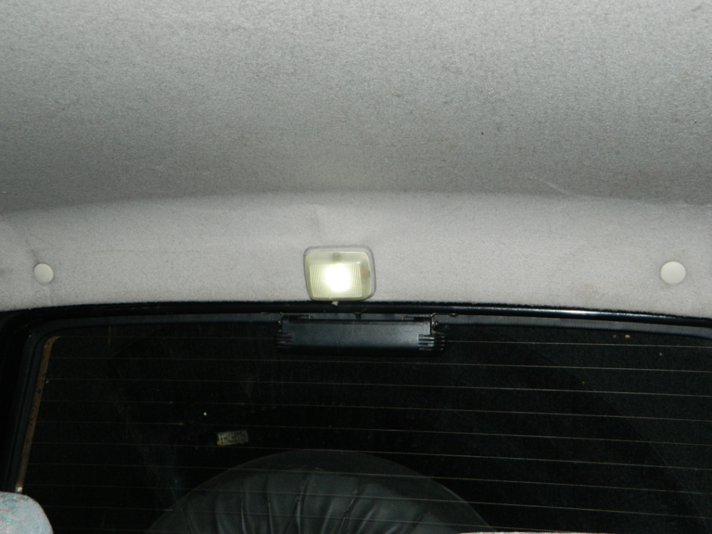 Надоела темнота в багажники 5ти дверки. Штатного плафона на крыше не хватает, сидения свет перекрывают. Запараллелил проводку, провел под обшивкой потолка, вывел через штатное отверстие клипсы, которая оббивку держит и посадил на два самореза. Как раз удобно в отбортовку, где шланг омывателя заднего стекла лежит, крышу дырявить не надо :). Повесил второй стоковый плафон. Воткнул светодиоды, Париж!