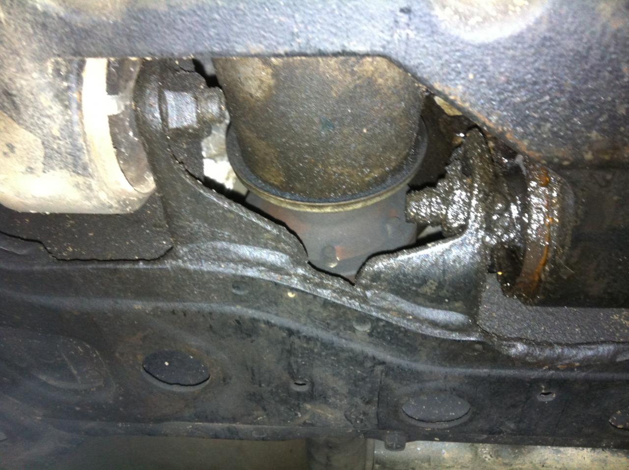 Подтекает масло между двигателем и коробкой - потеки по стенке картера.